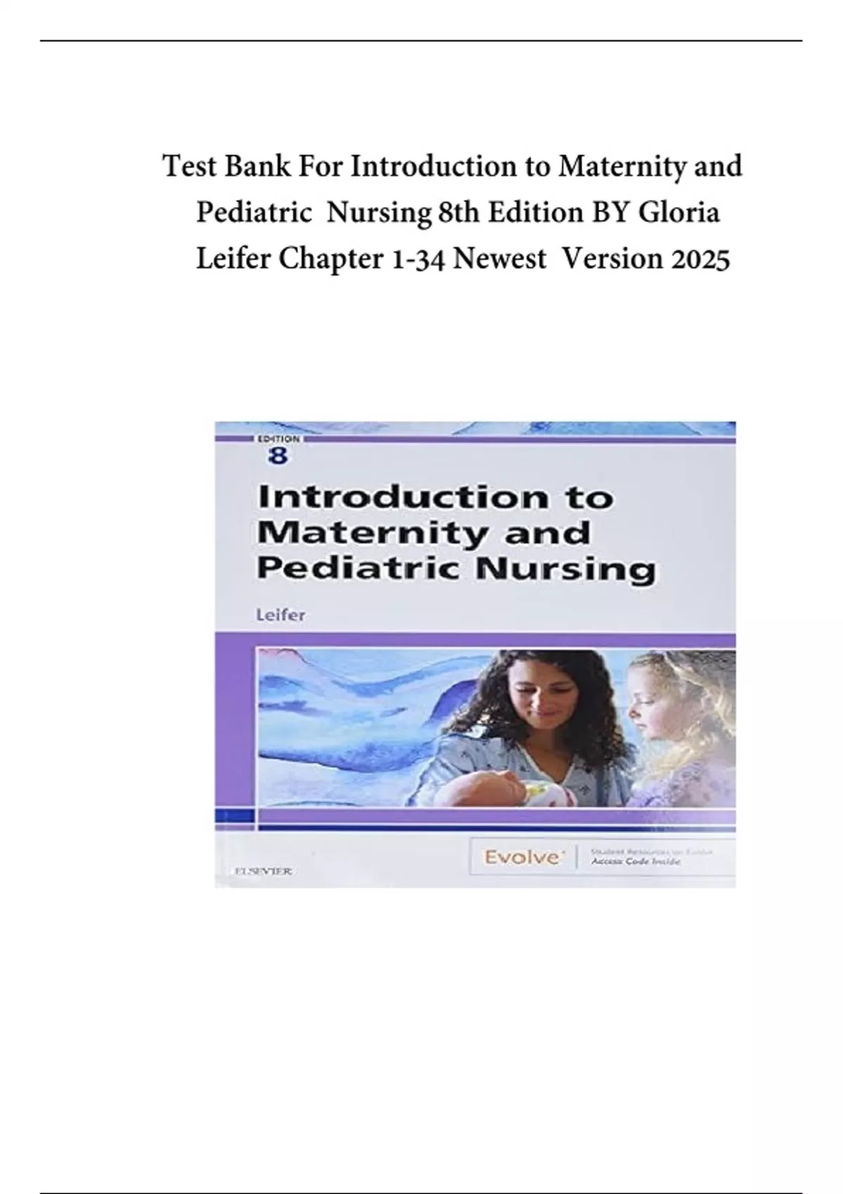 Test Bank For Introduction to Maternity and Pediatric Nursing 8th Edition BY Gloria Leifer Chapter 1-34 Newest Version 2025