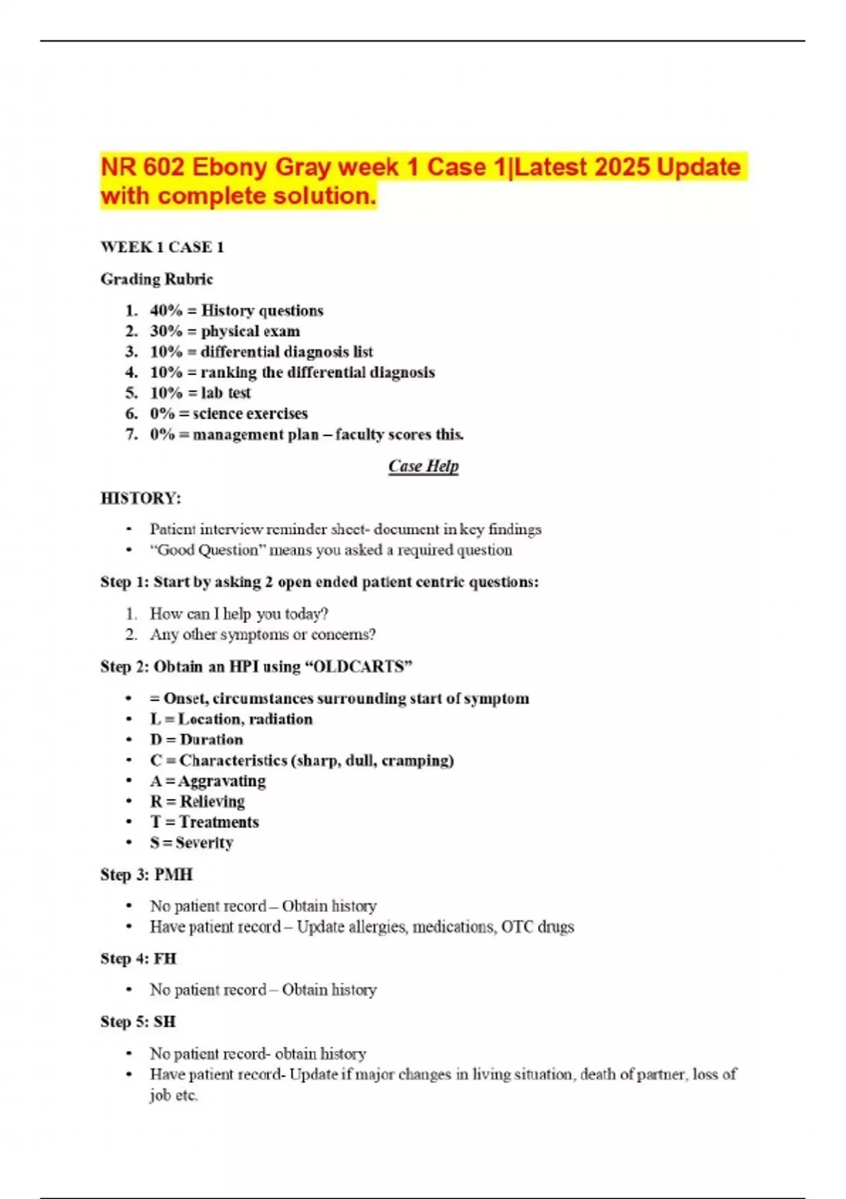 NR 602 Ebony Gray week 1 Case 1|Latest 2025 Update with complete solution.