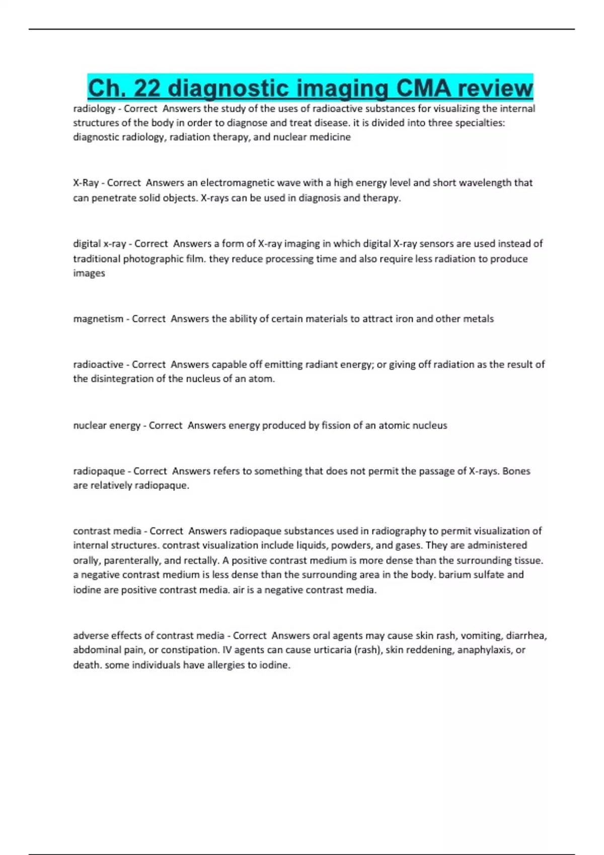 X-Ray - Correct Answers an electromagnetic wave with a high energy level and short wavelength that