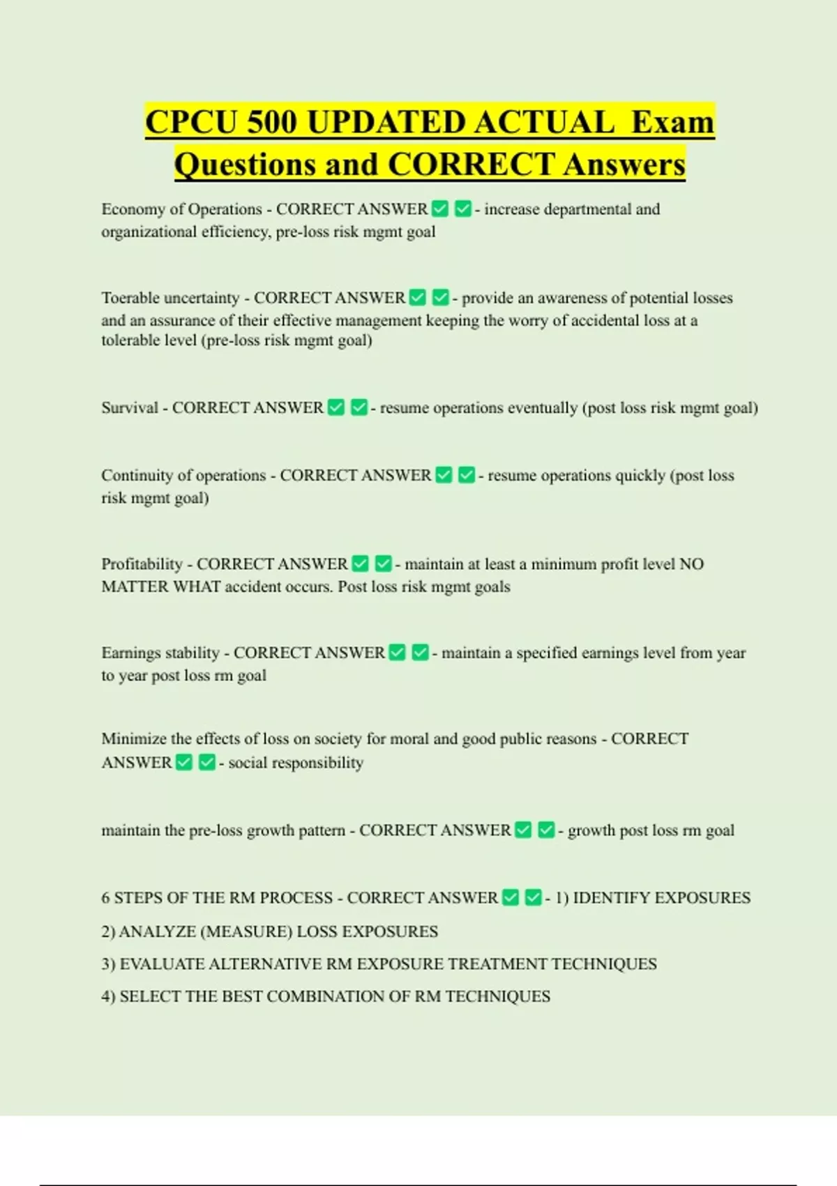 6 STEPS OF THE RM PROCESS - CORRECT ANSWER - 1) IDENTIFY EXPOSURES