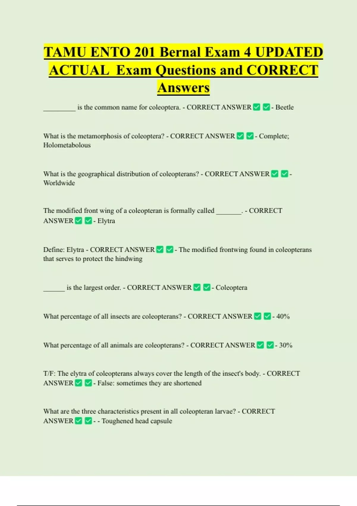 What percentage of all insects are coleopterans? - CORRECT ANSWER - 40%