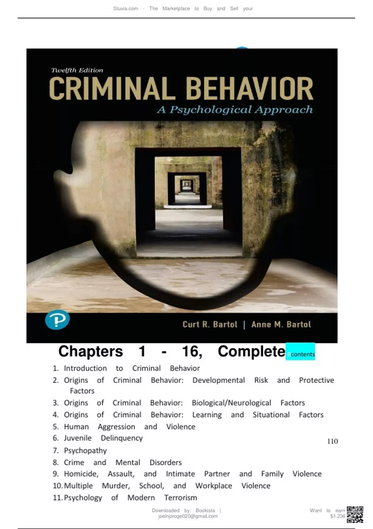 TEST BANK For Criminal Behavior: A Psychological Approach 12th Edition (Bartol) Chapters 1 - 16, CompleteTEST BANK For Criminal Behavior: A Psychological Approach 12th Edition (Bartol) Chapters 1 - 16, CompleteTEST BANK For Criminal Behavior: A Psychologi