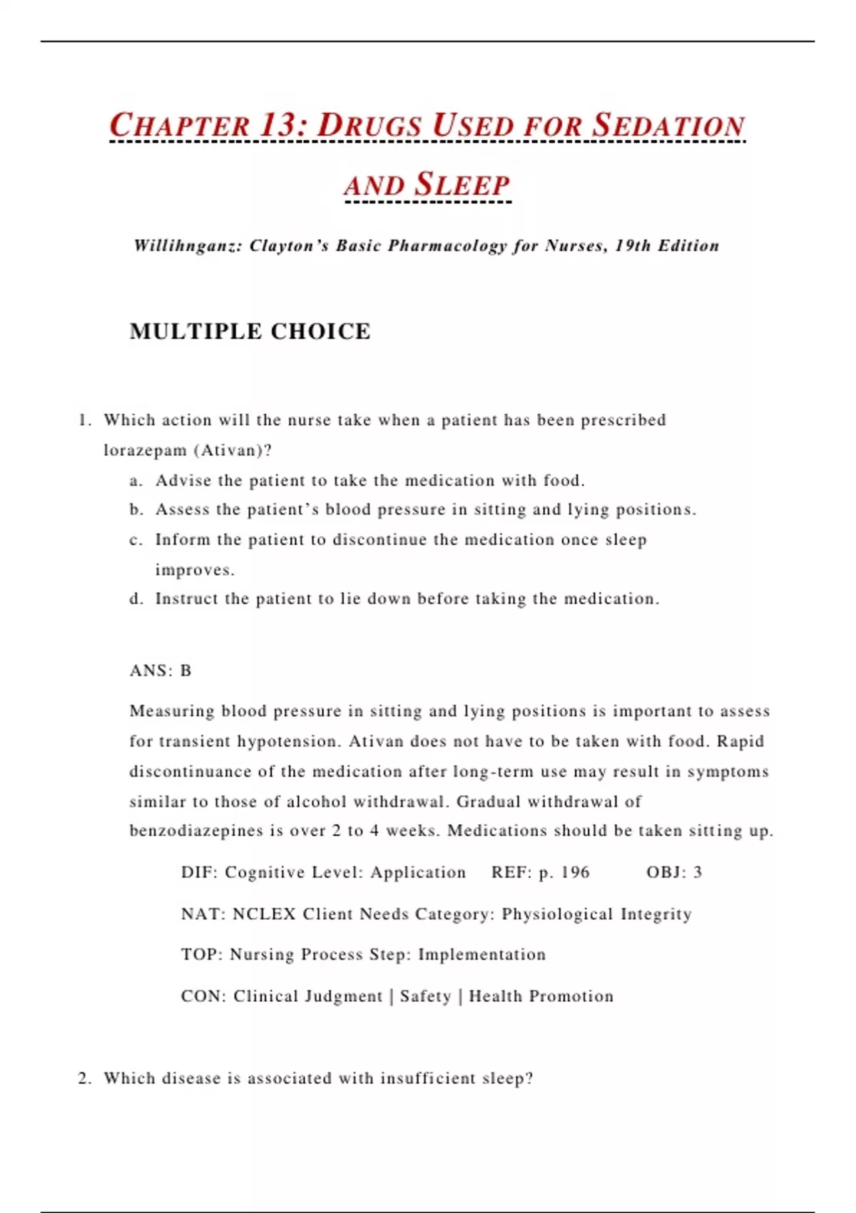 NAT: NCLEX Client Needs Category: Physiological Integrit y