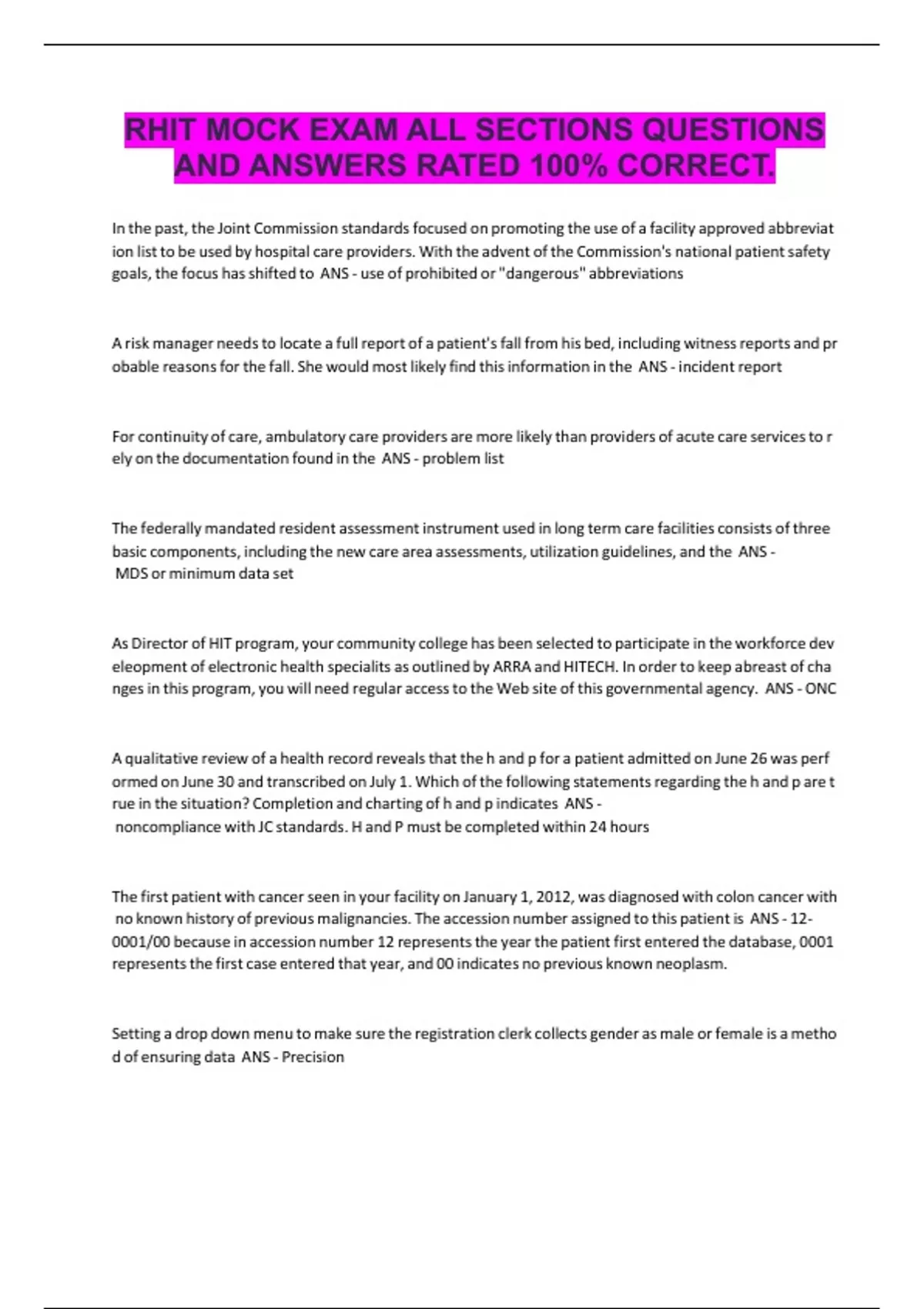 A,qualitative,review,of,a,health,record,reveals,that,the,h,and,p,for,a,patient,admitted,on,June,26,was,perf