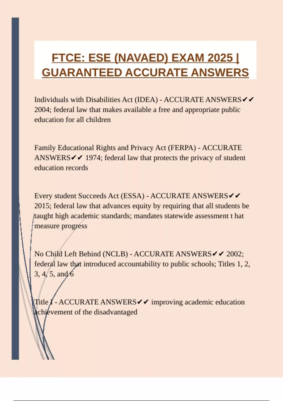 Every student Succeeds Act (ESSA) - ACCURATE ANSWERS✔✔