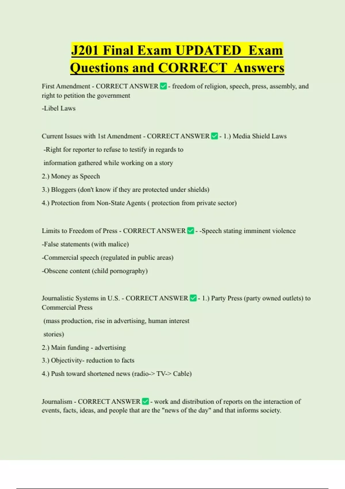 Limits to Freedom of Press - CORRECT ANSWER - -Speech stating imminent violence