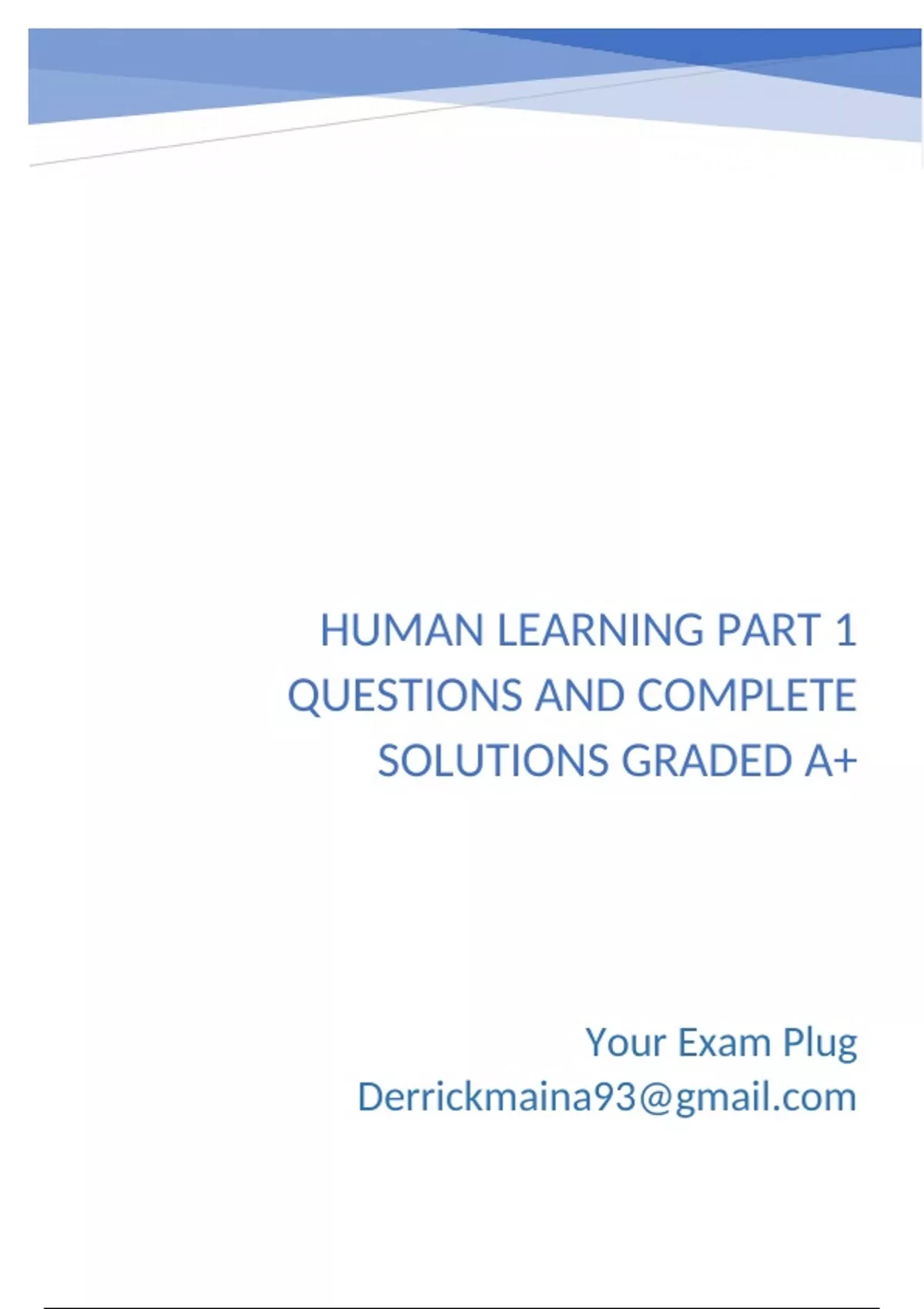 Human Learning part 1 Questions and Complete Solutions Graded A+