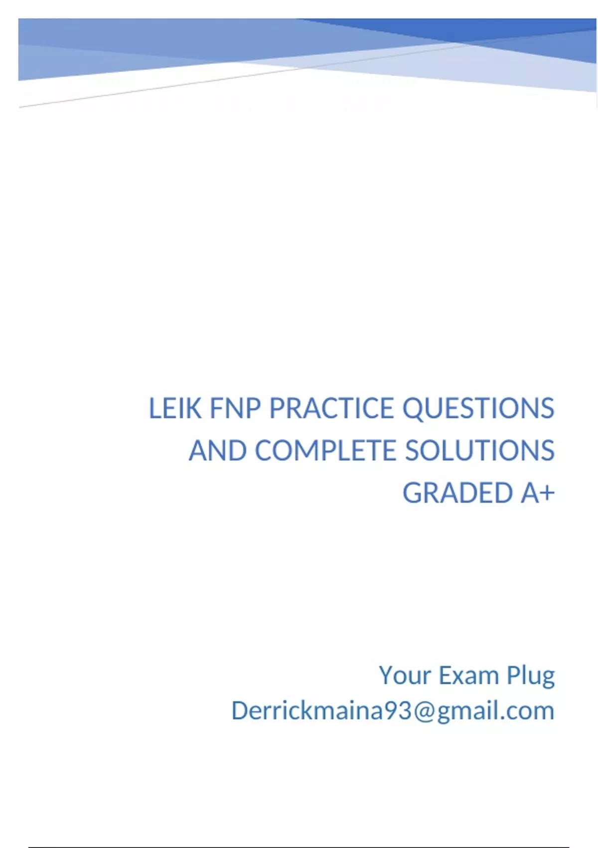 LEIK FNP Practice Questions and Complete Solutions Graded A+