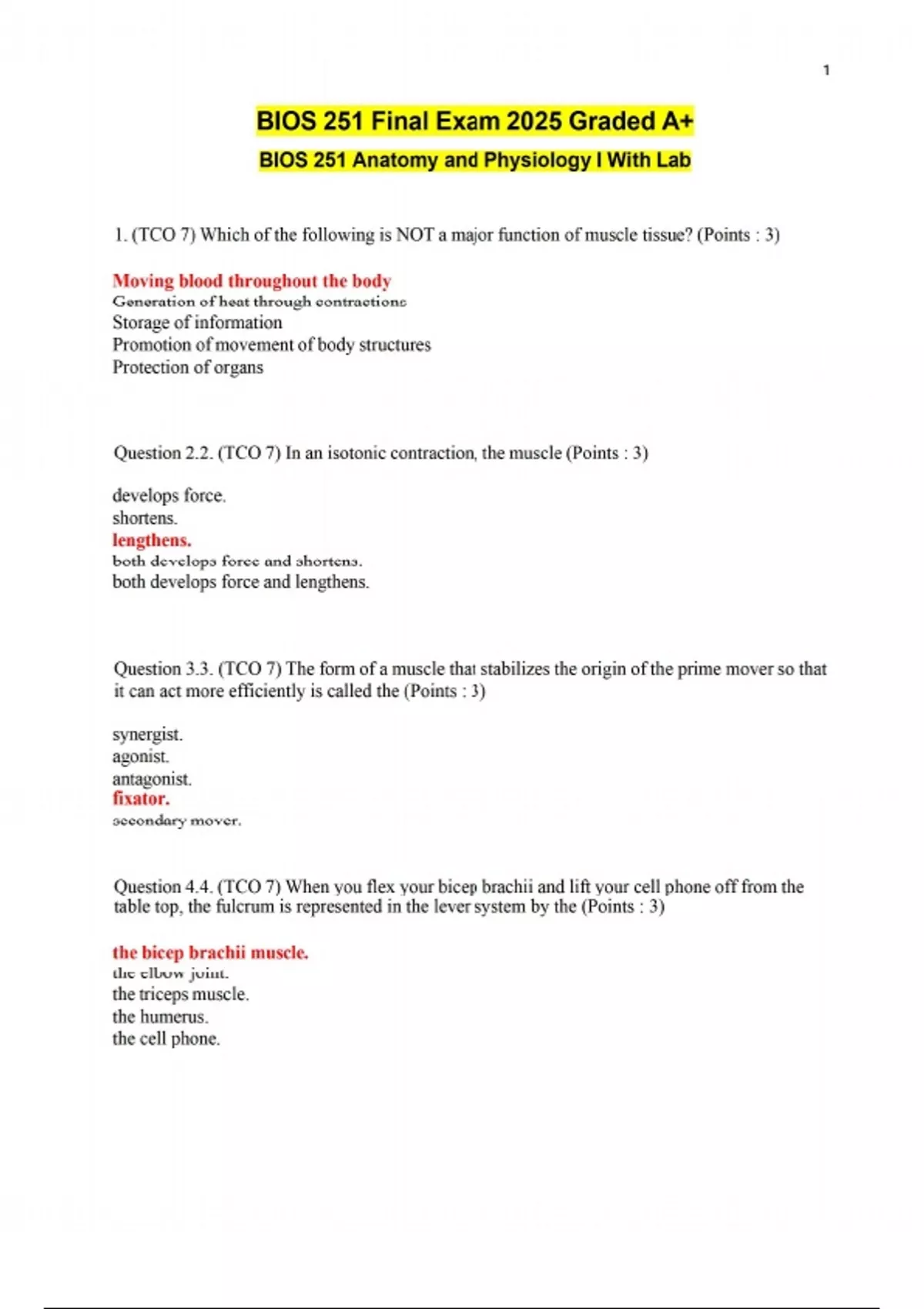 BIOS 251 Anatomy and Physiology I With Lab Final Exam 2025 Graded A+