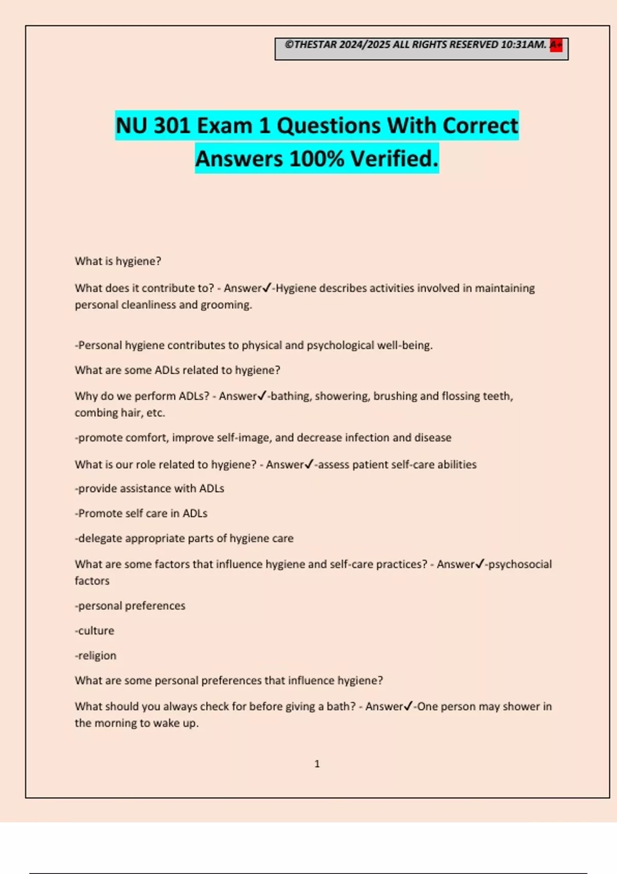 What does it contribute to? - Answer✔-Hygiene describes activities involved in maintaining