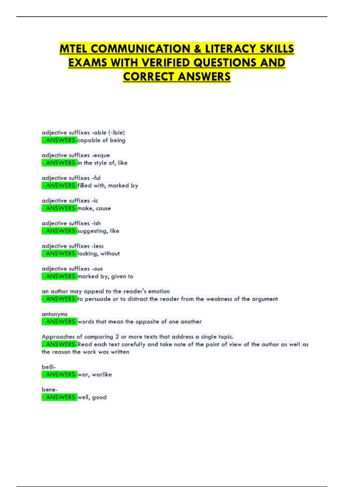 FOUNDATIONS OF READING MTEL REVEIW EXAMS VERIFIED QUESTIONS AND CORRECT ANSWERS