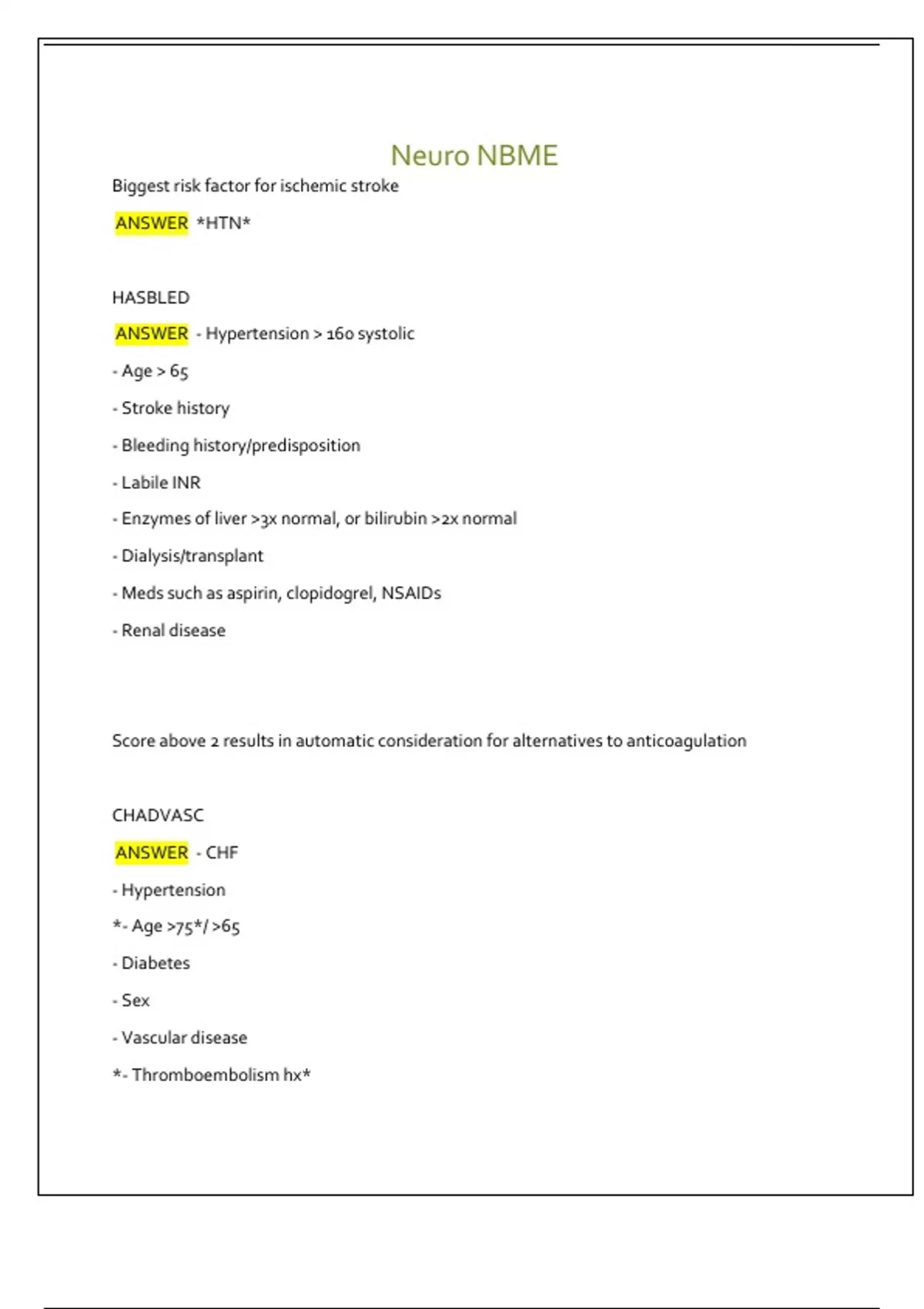 ANSWER - Hypertension > 160 systolic
