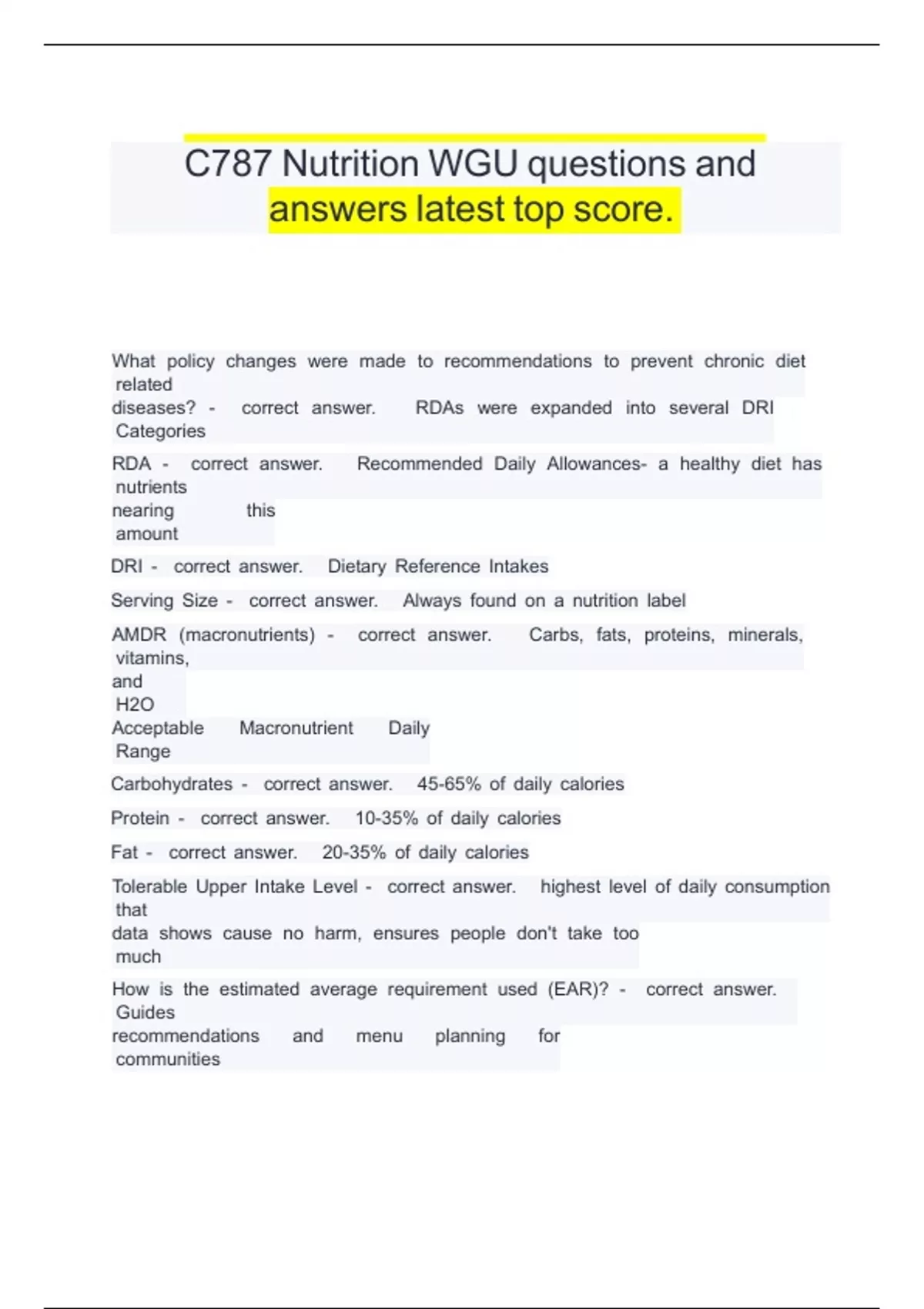 C787 Nutrition WGU questions and