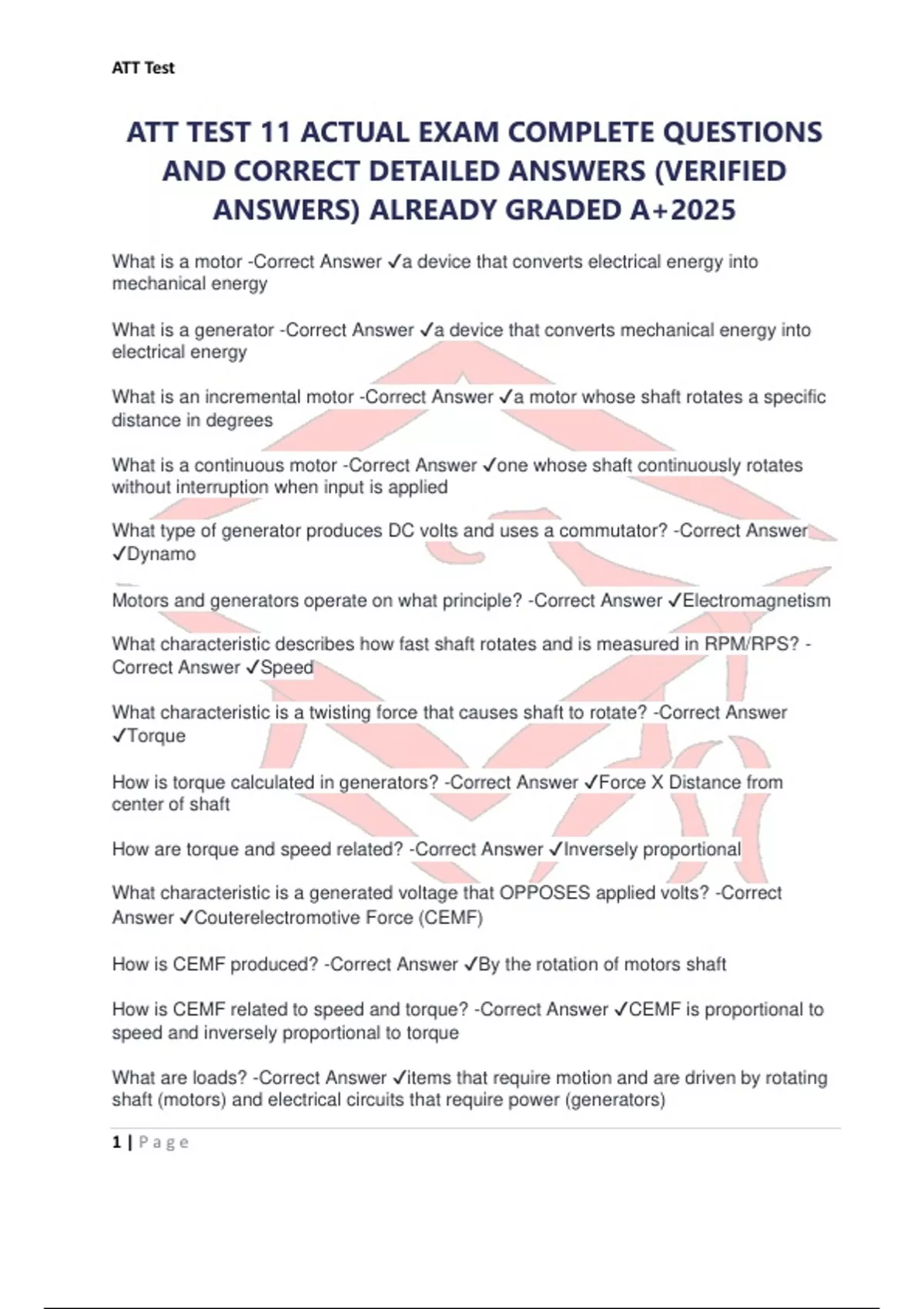 ATT TEST 11 ACTUAL EXAM COMPLETE QUESTIONS AND CORRECT DETAILED ANSWERS (VERIFIED ANSWERS) ALREADY GRADED A+2025