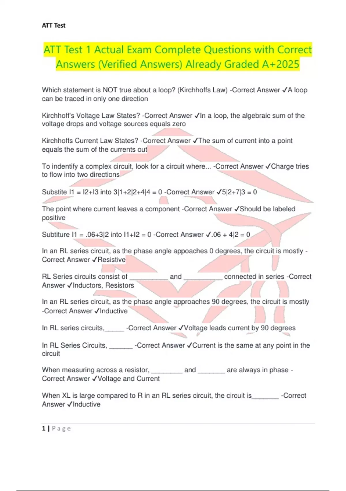 ATT Test 1 Actual Exam Complete Questions with Correct