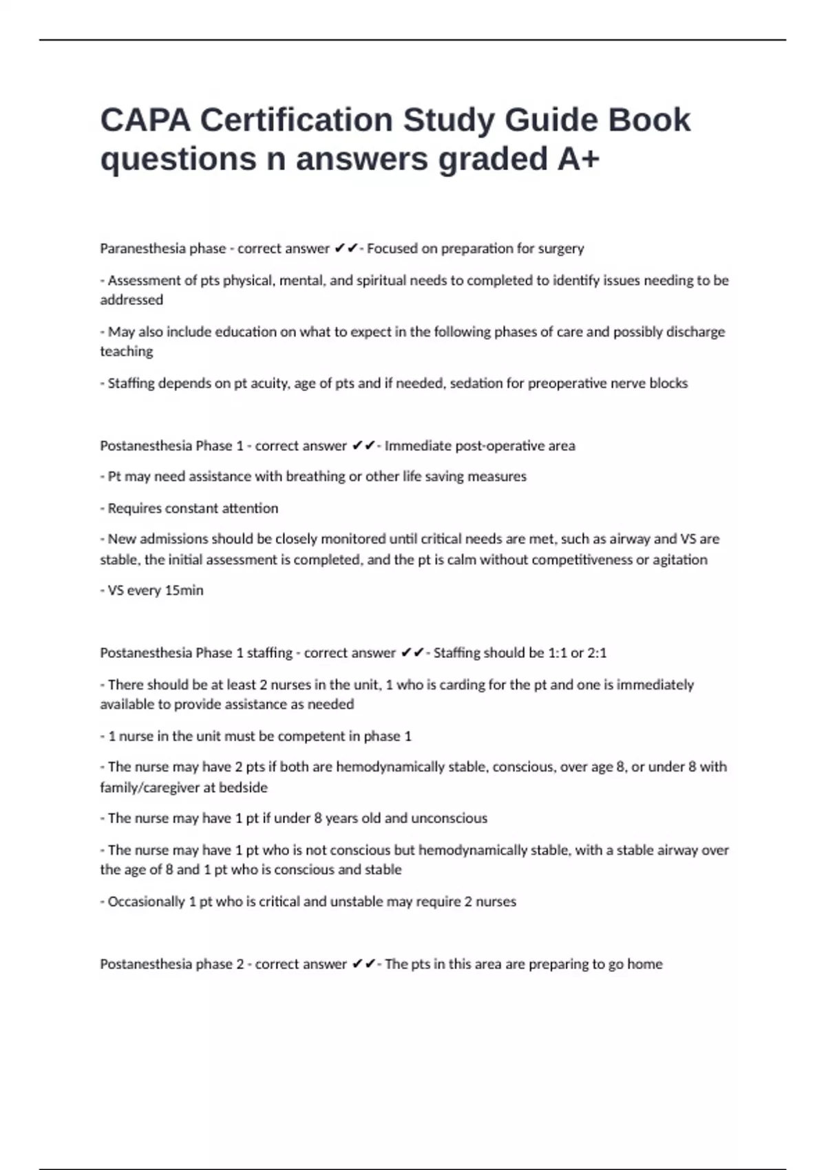 Postanesthesia Phase 1 staffing - correct answer ✔✔- Staffing should be 1:1 or 2:1