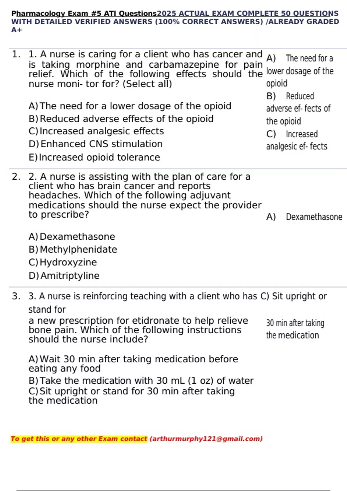 Pharmacology Exam #5 ATI Questions2025 ACTUAL EXAM COMPLETE 50 QUESTIONS WITH DETAILED VERIFIED ANSWERS (100% CORRECT ANSWERS) /ALREADY GRADED A+