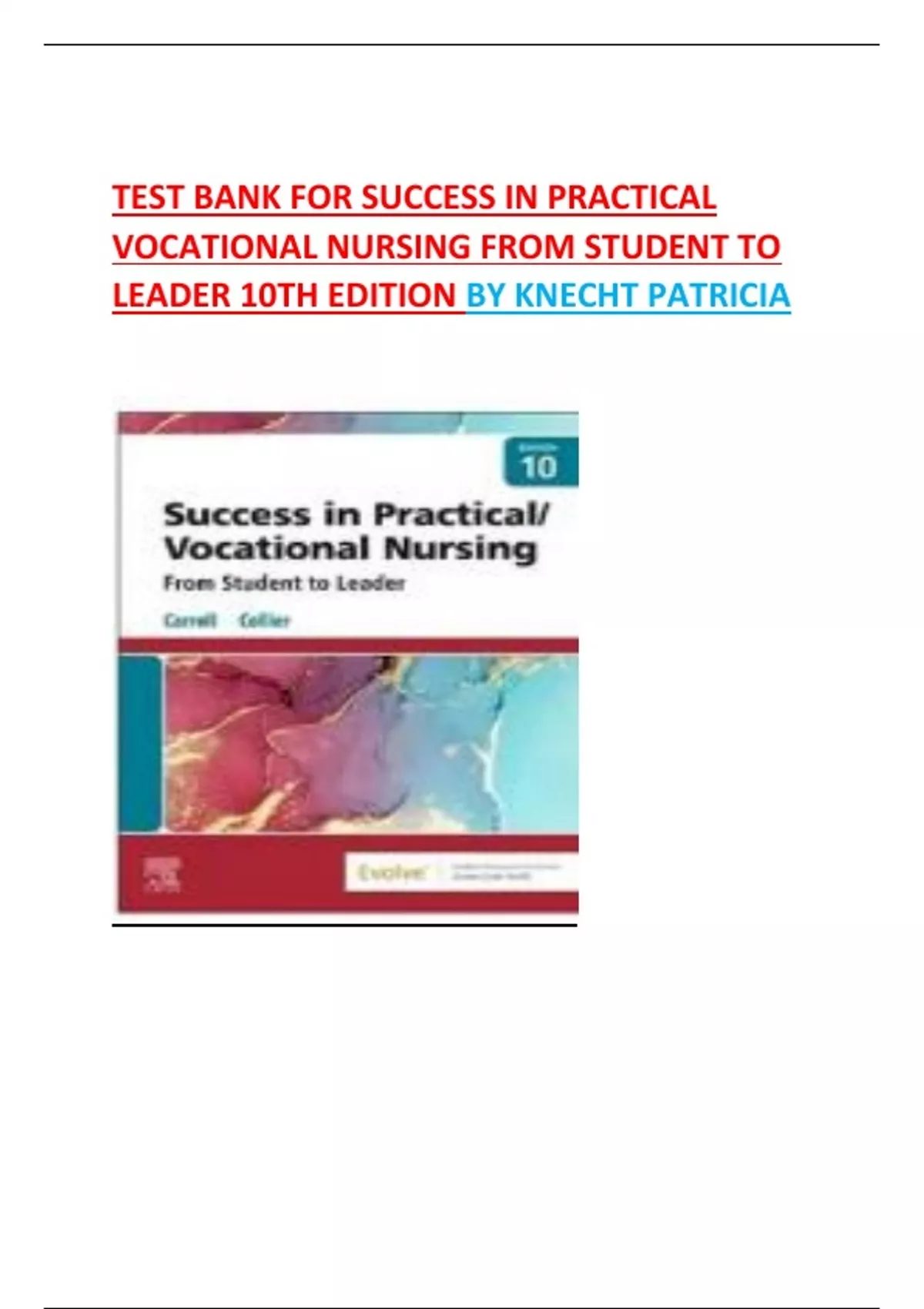 TEST BANK FOR SUCCESS IN PRACTICAL
