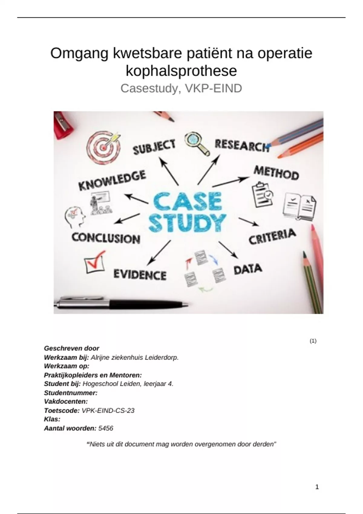 Volledig uitgewerkte casestudy inclusief ICF-Model, literatuuronderzoek, praktijkonderzoek, ingevulde CASP-Checklists, Topiclijst voor interview en gecodeerde tekst