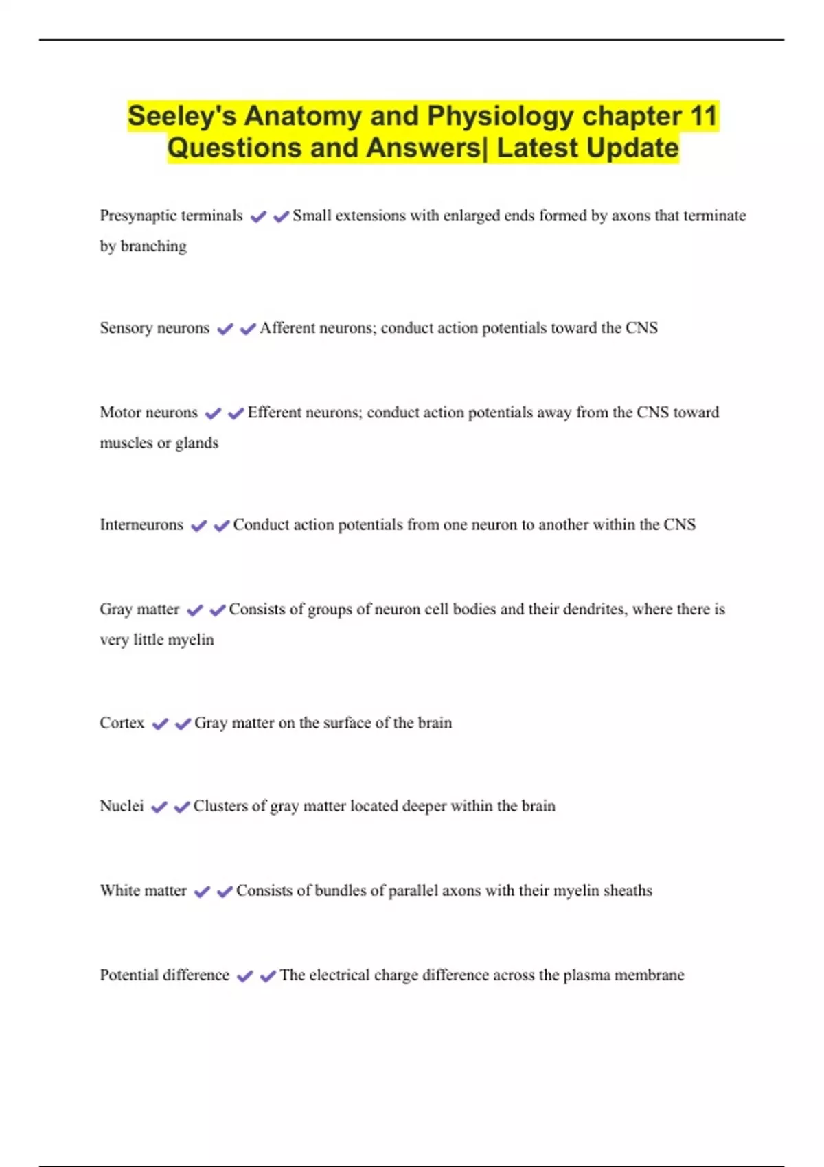Seeley's Anatomy and Physiology chapter 11 Questions and Answers| Latest Update