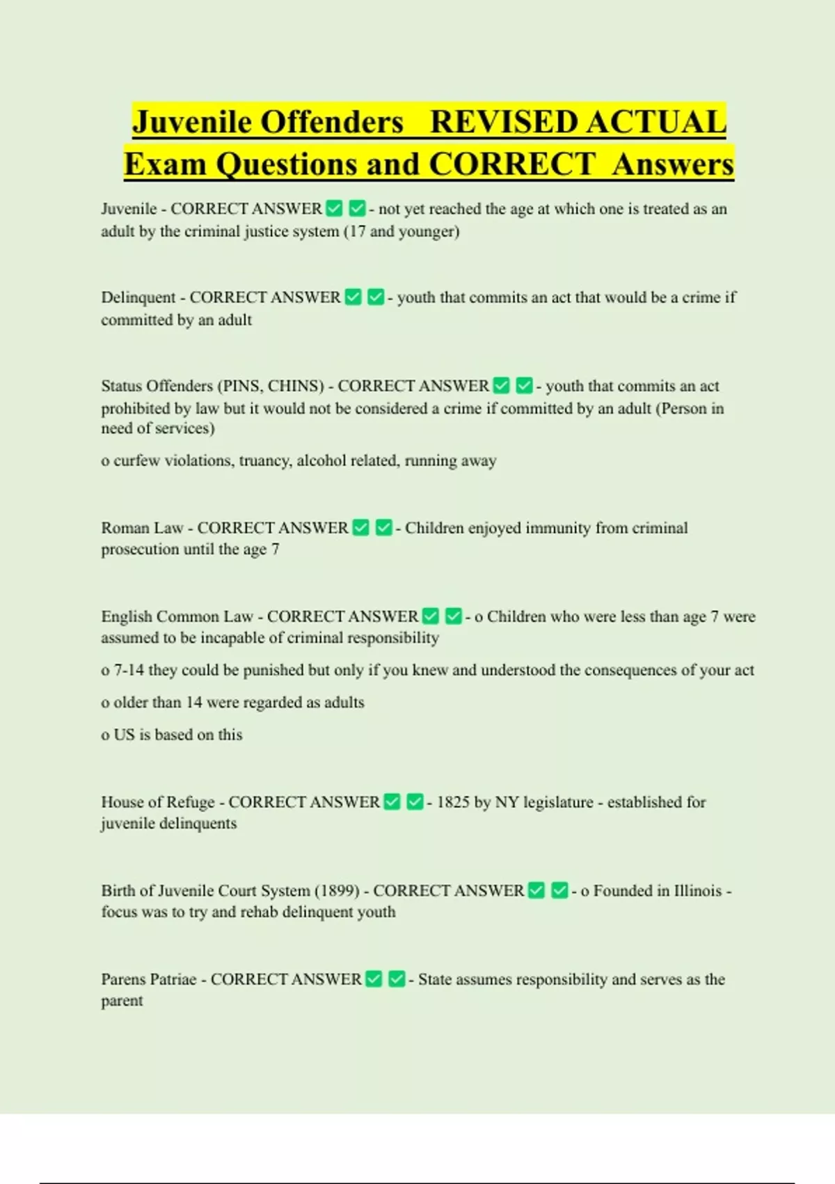 Birth of Juvenile Court System (1899) - CORRECT ANSWER - o Founded in Illinois -