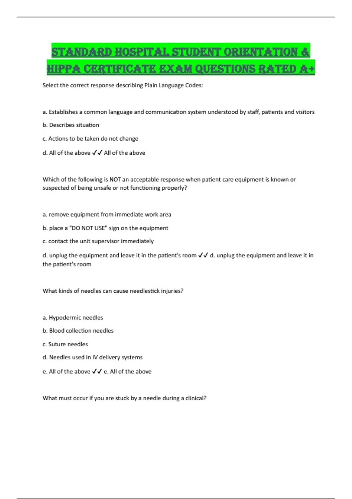 d. Report the injury to your instructor/preceptor so that you receive appropriate follow-up care ✔✔ d.