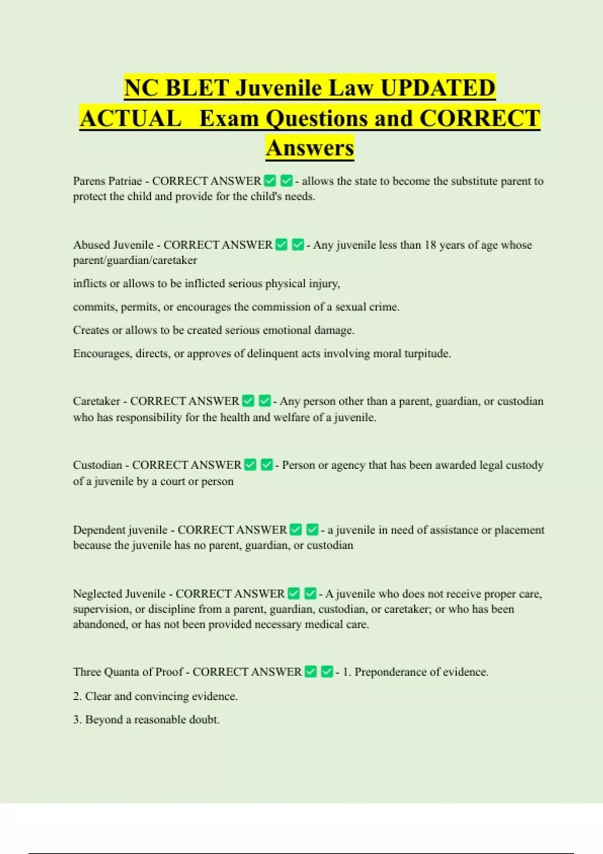 Neglected Juvenile - CORRECT ANSWER - A juvenile who does not receive proper care,