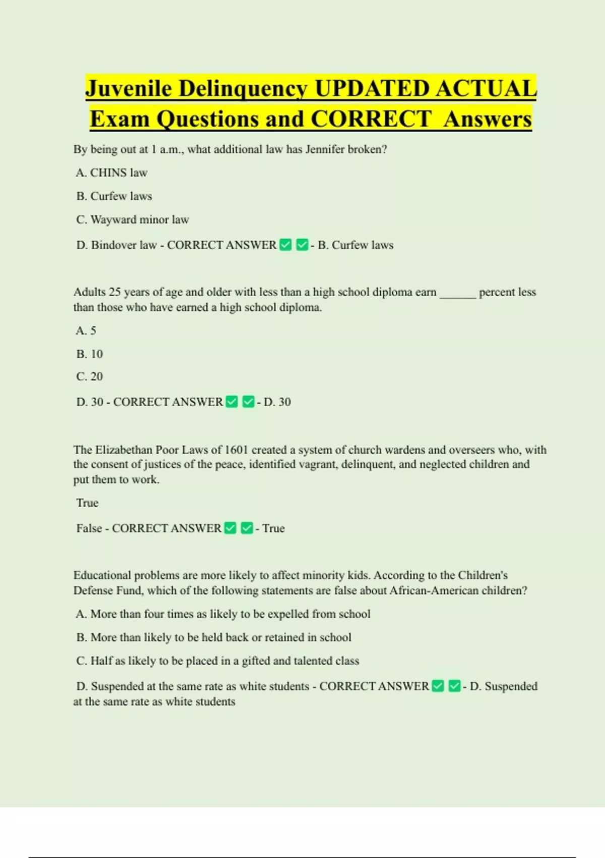 D. Unruly child - CORRECT ANSWER - A. Delinquent