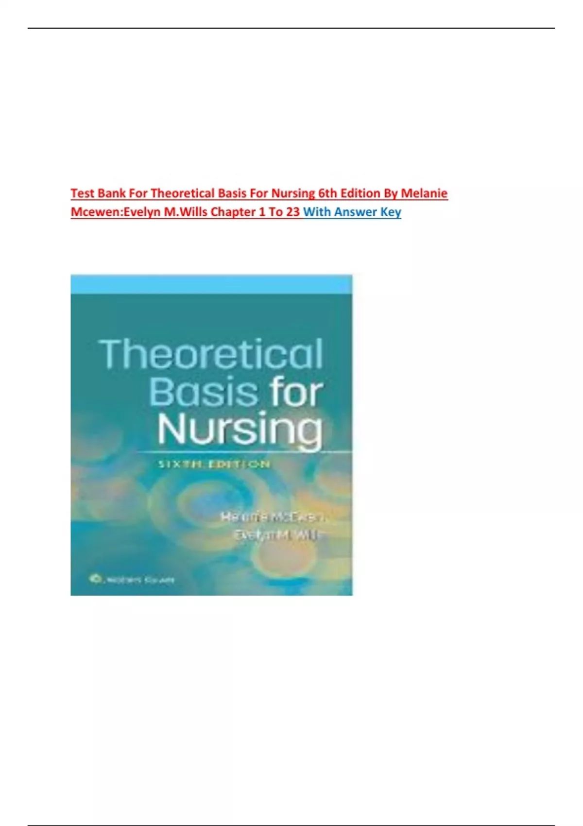 TEST BANK FOR THEORETICAL BASIS FOR NURSING 6TH EDITION BY MELANIE MCEWEN:EVELYN M.WILLS CHAPTER 1 TO 23 WITH ANSWER KEY TEST BANK FOR THEORETICAL BASIS FOR NURSING 6TH EDITION BY MELANIE MCEWEN:EVELYN M.WILLS CHAPTER 1 TO 23 WITH ANSWER KEY