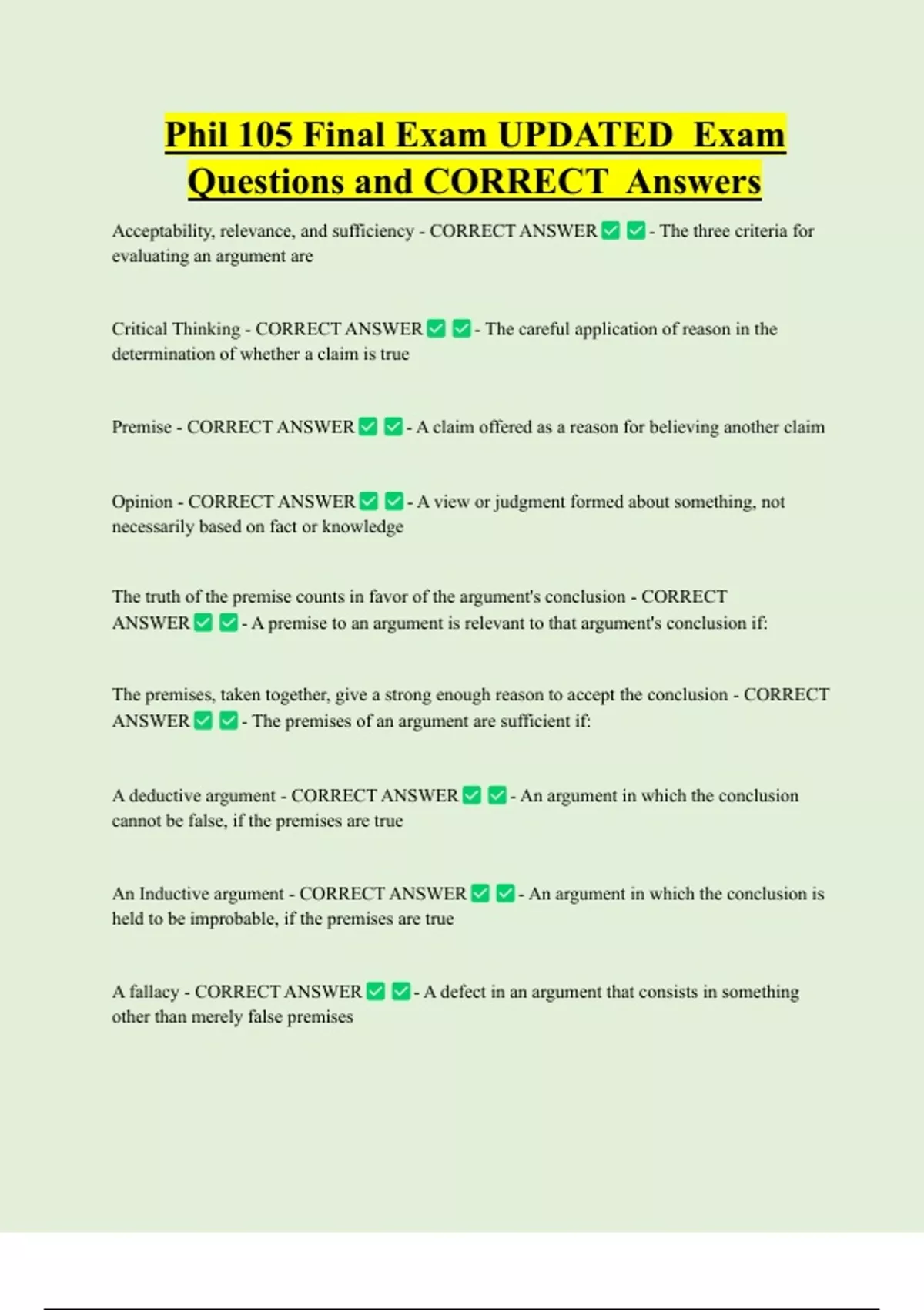 Questions and CORRECT Answers
