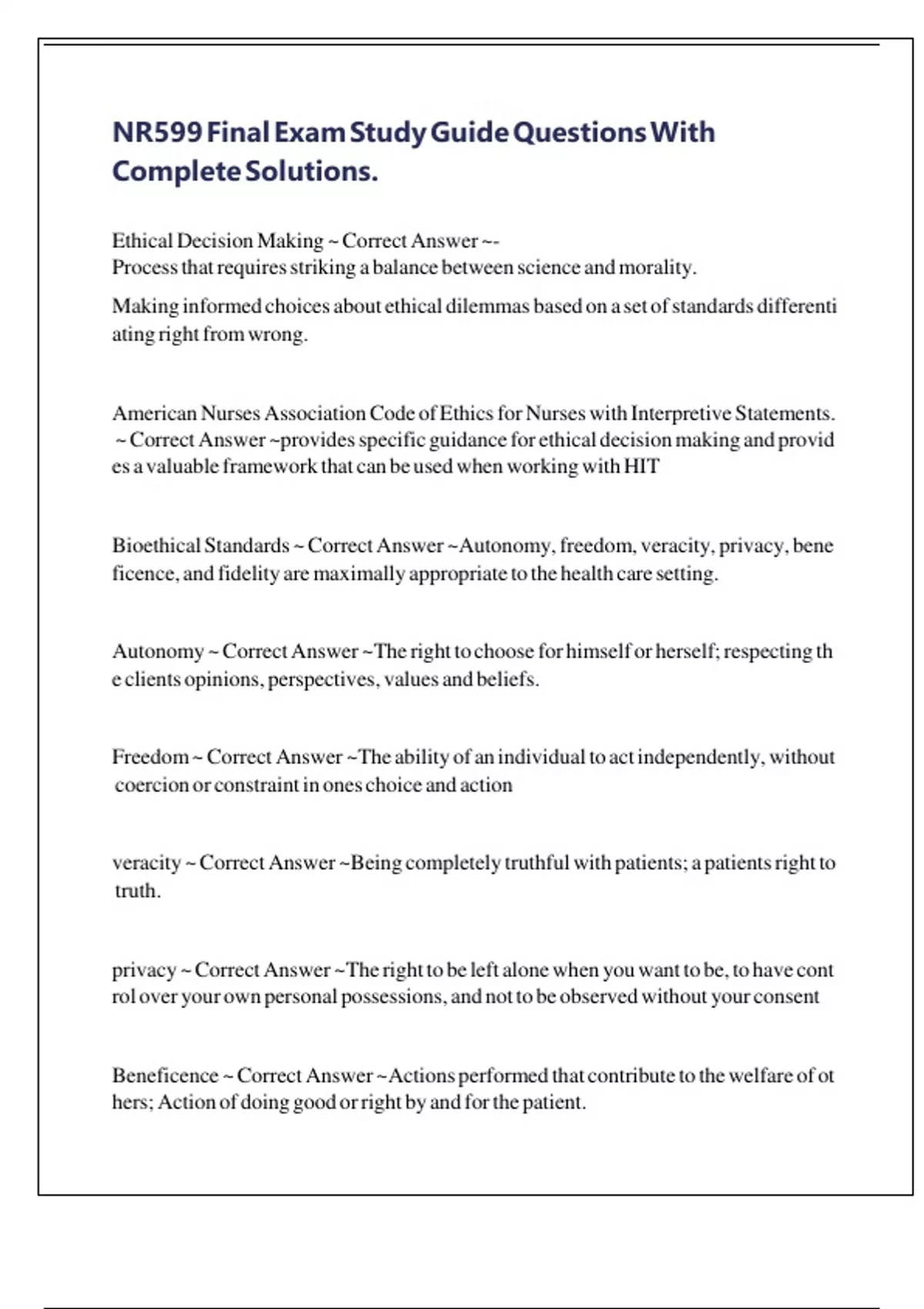 Bioethical.Standards.~.Correct.Answer.~Autonomy,.freedom,.veracity,.privacy,.bene