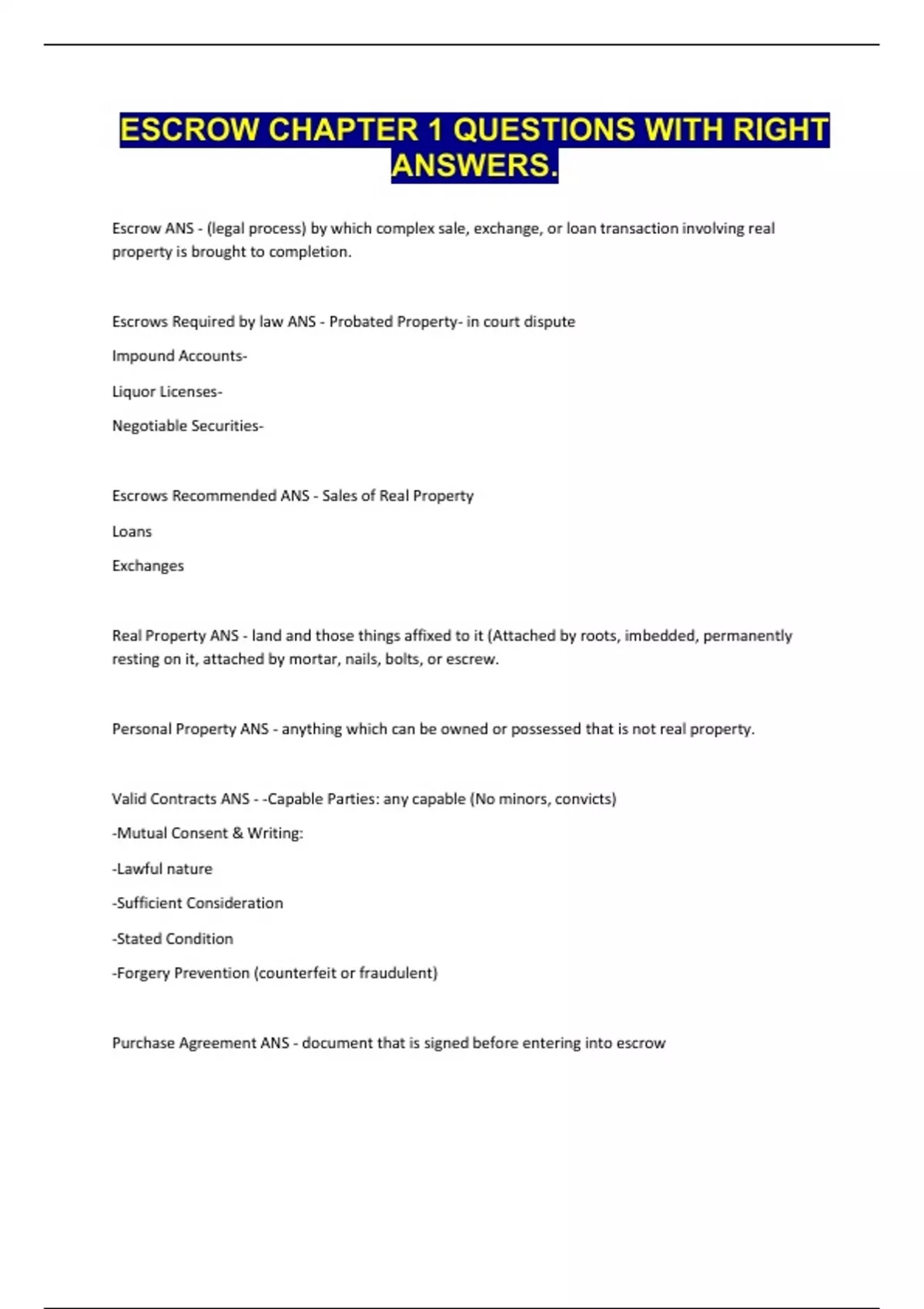 Escrows Recommended ANS - Sales of Real Property