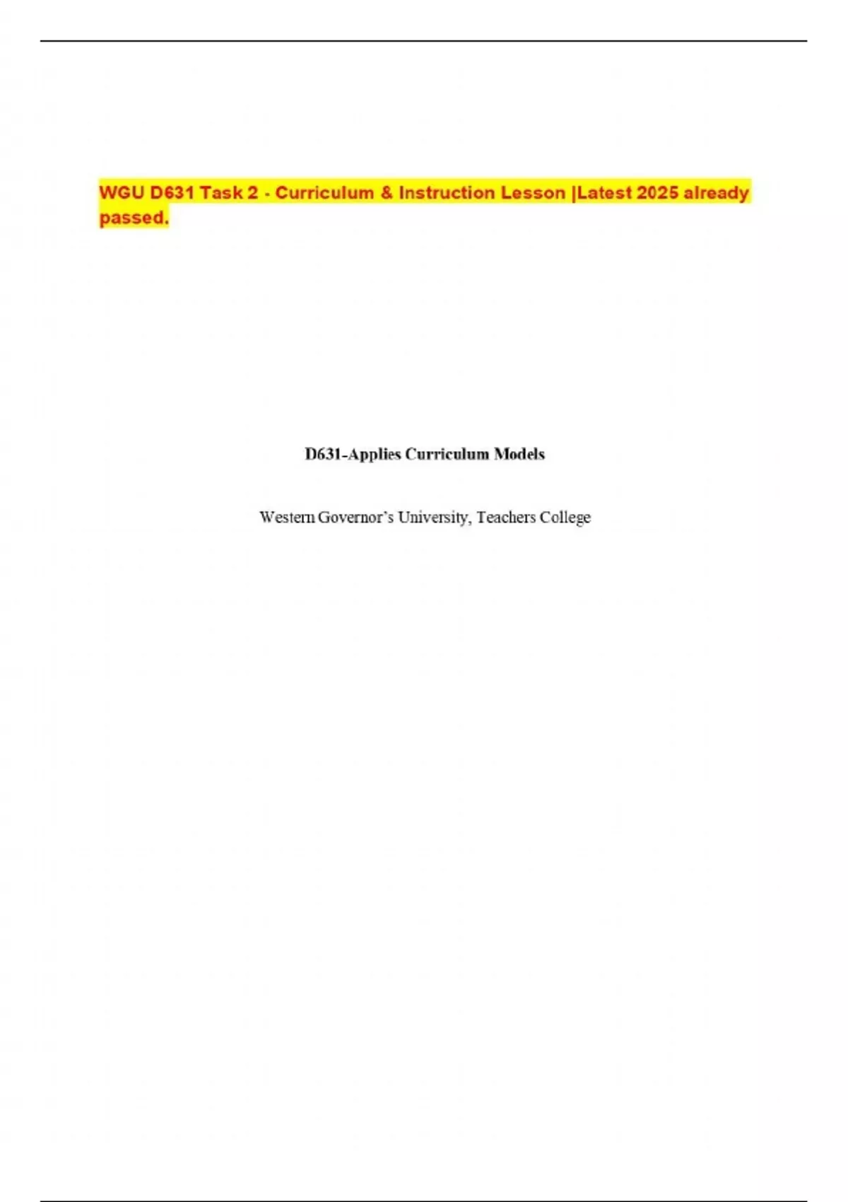 WGU D631 Task 2 - Curriculum & Instruction Lesson |Latest 2025 already passed.