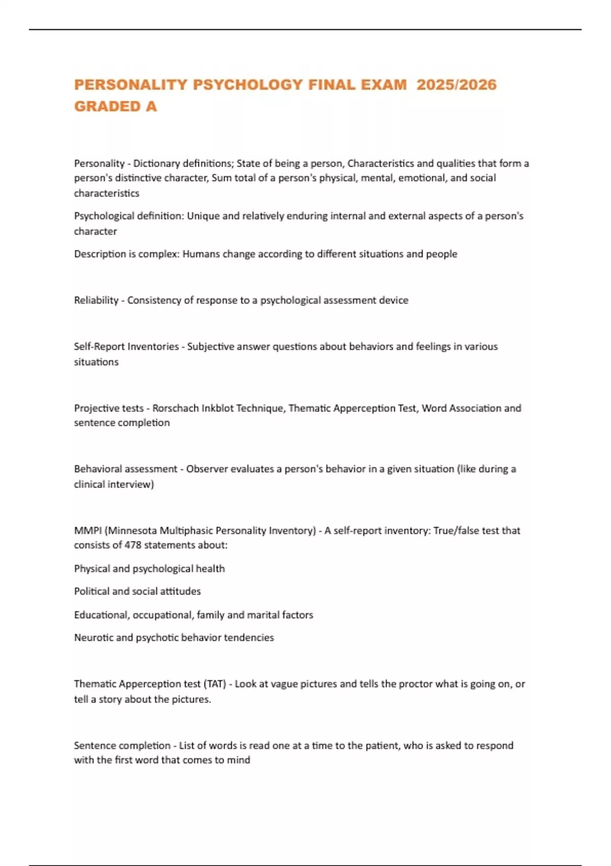 MMPI (Minnesota Multiphasic Personality Inventory) - A self-report inventory: True/false test that