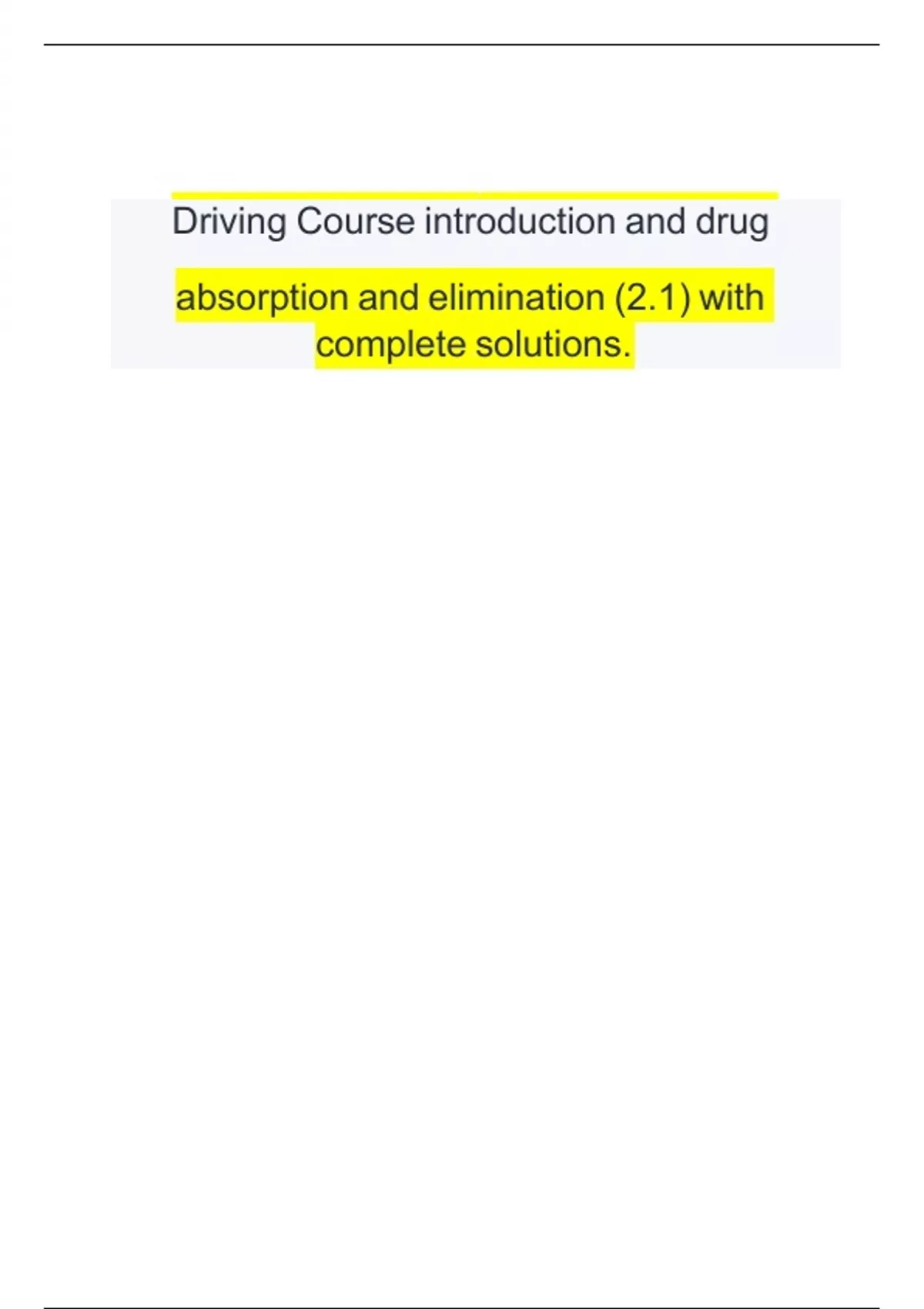 Driving Course introduction and drug Driving Course introduction and drug absorption and elimination (2.1) with complete solutions. Driving Course introduction and drug absorption and elimination (2.1) with complete solutions. Driving Course introduction and drug Driving Course introduction and drug absorption and elimination (2.1) with complete solutions. Driving Course introduction and drug absorption and elimination (2.1) with Driving Course introduction and drug absorption and elimination (2.1) with complete solutions. complete solutions.
