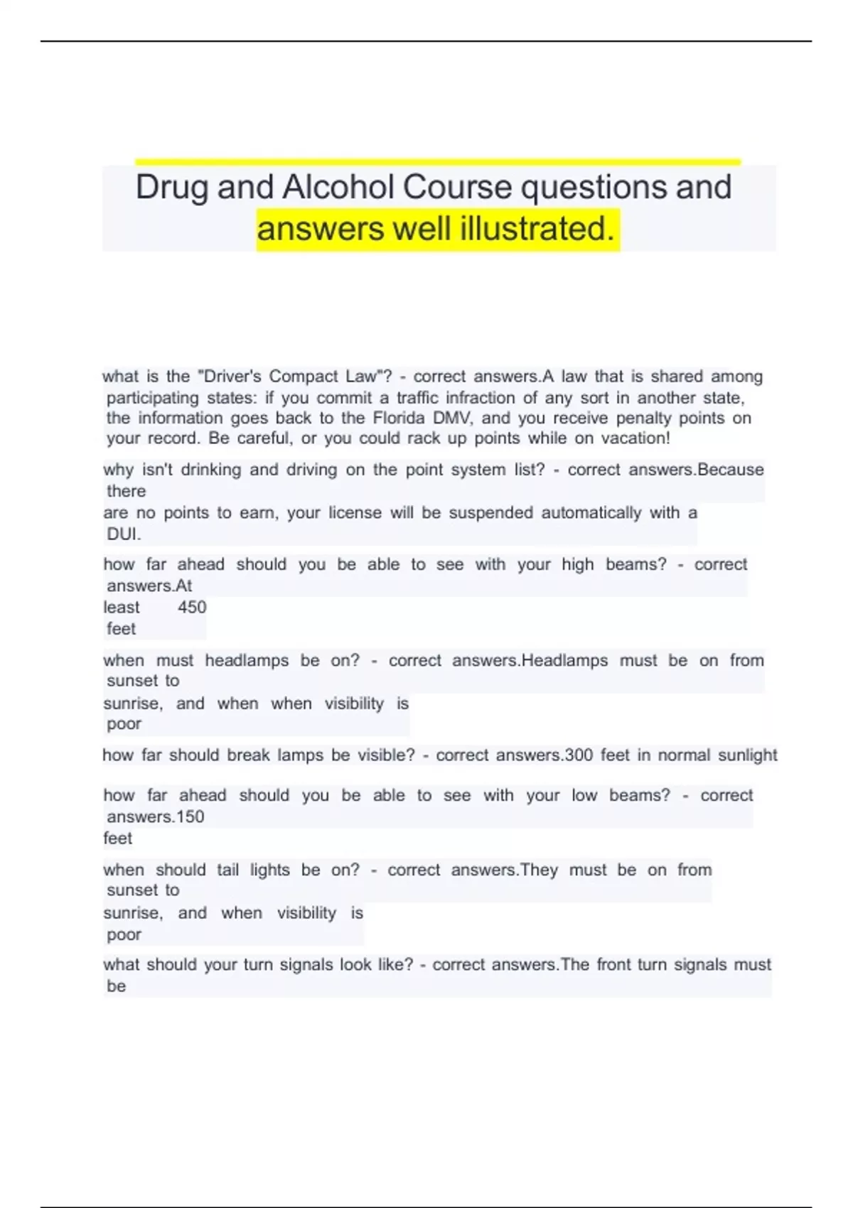 Drug and Alcohol Course questions and