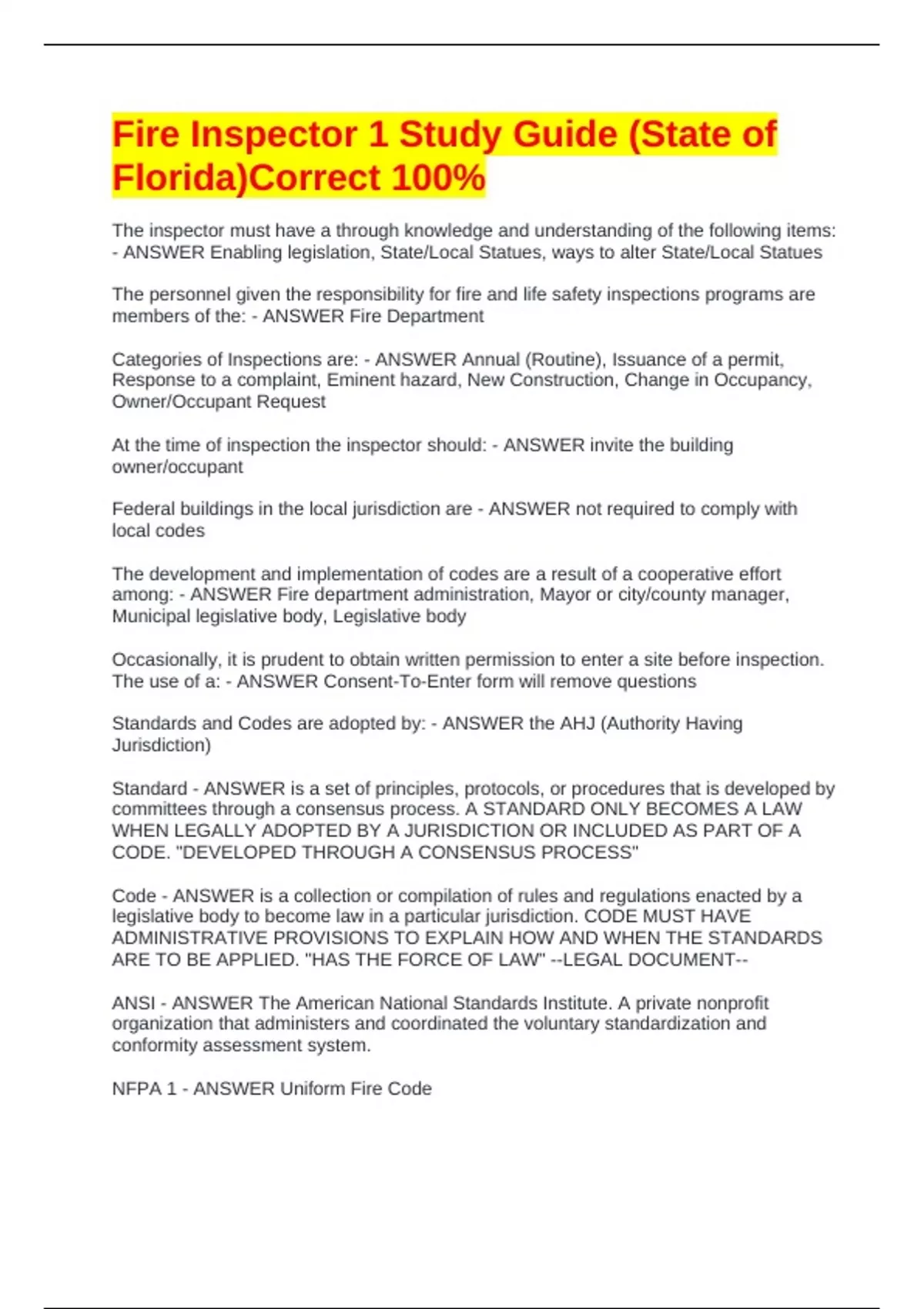 NFPA 1031 - ANSWER Standard for Professional Qualifications for Fire Inspector and