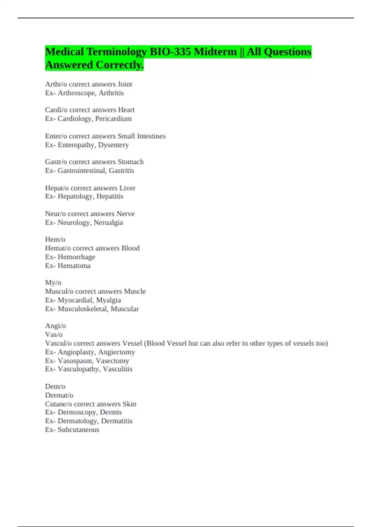 Vascul/o correct answers Vessel (Blood Vessel but can also refer to other types of vessels too)