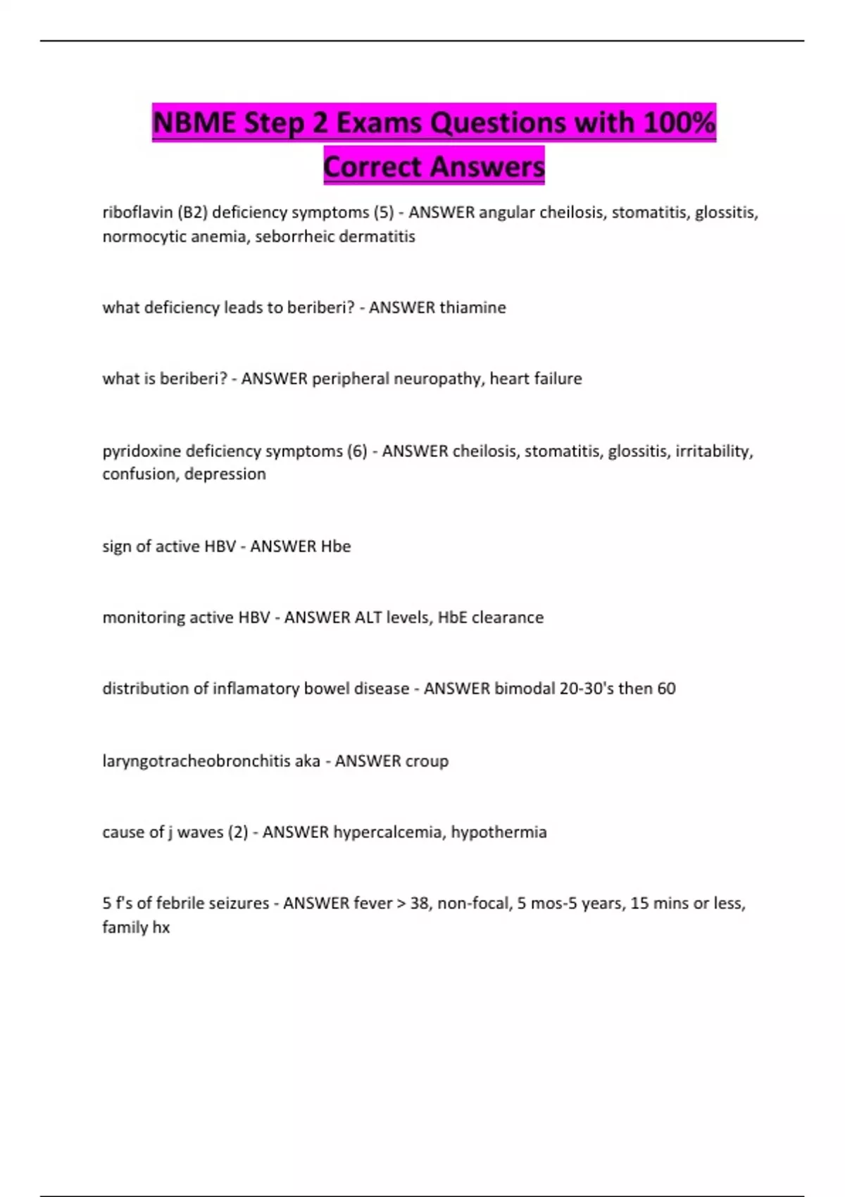 NBME Step 2 Exams Questions with 100%