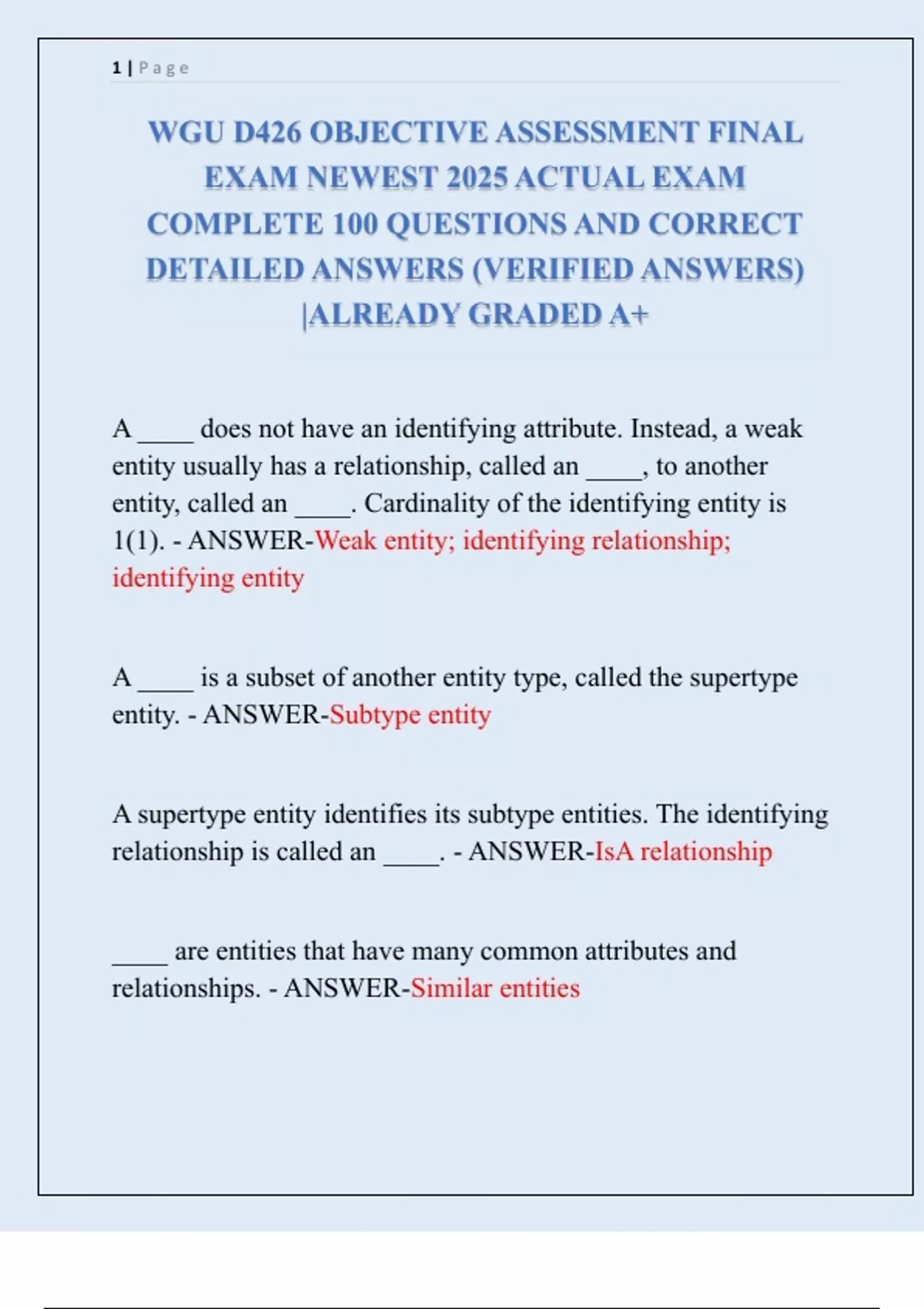 WGU D426 OBJECTIVE ASSESSMENT FINAL EXAM NEWEST 2025 ACTUAL EXAM COMPLETE 100 QUESTIONS AND CORRECT DETAILED ANSWERS (VERIFIED ANSWERS) |ALREADY GRADED A+