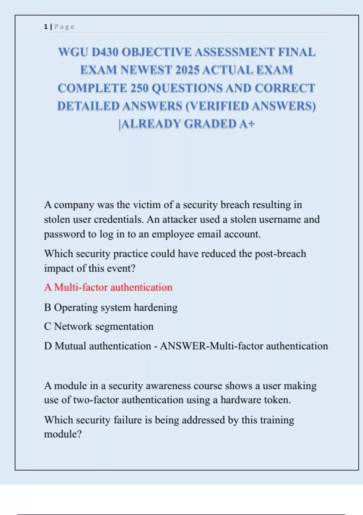 WGU D430 OBJECTIVE ASSESSMENT FINAL EXAM NEWEST 2025 ACTUAL EXAM COMPLETE 250 QUESTIONS AND CORRECT DETAILED ANSWERS (VERIFIED ANSWERS) |ALREADY GRADED A+