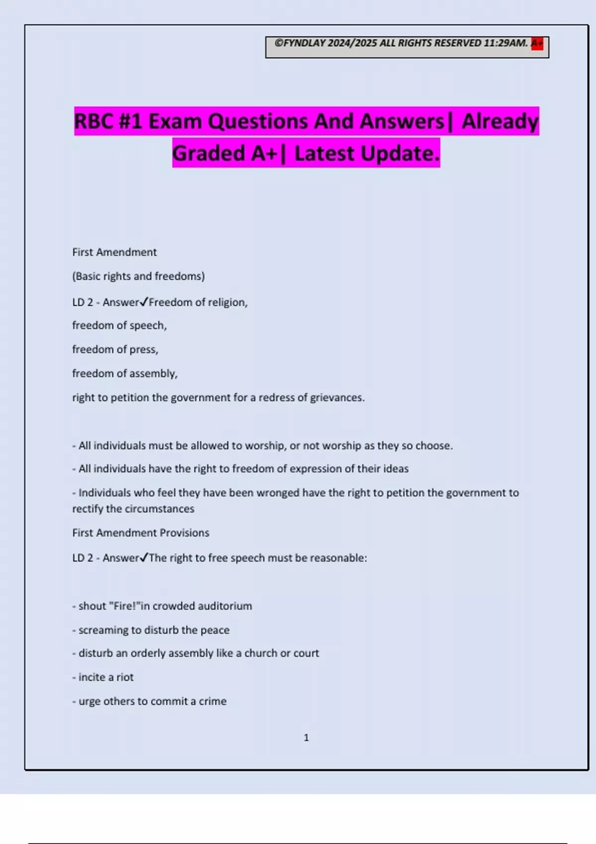 RBC #1 Exam Questions And Answers| Already