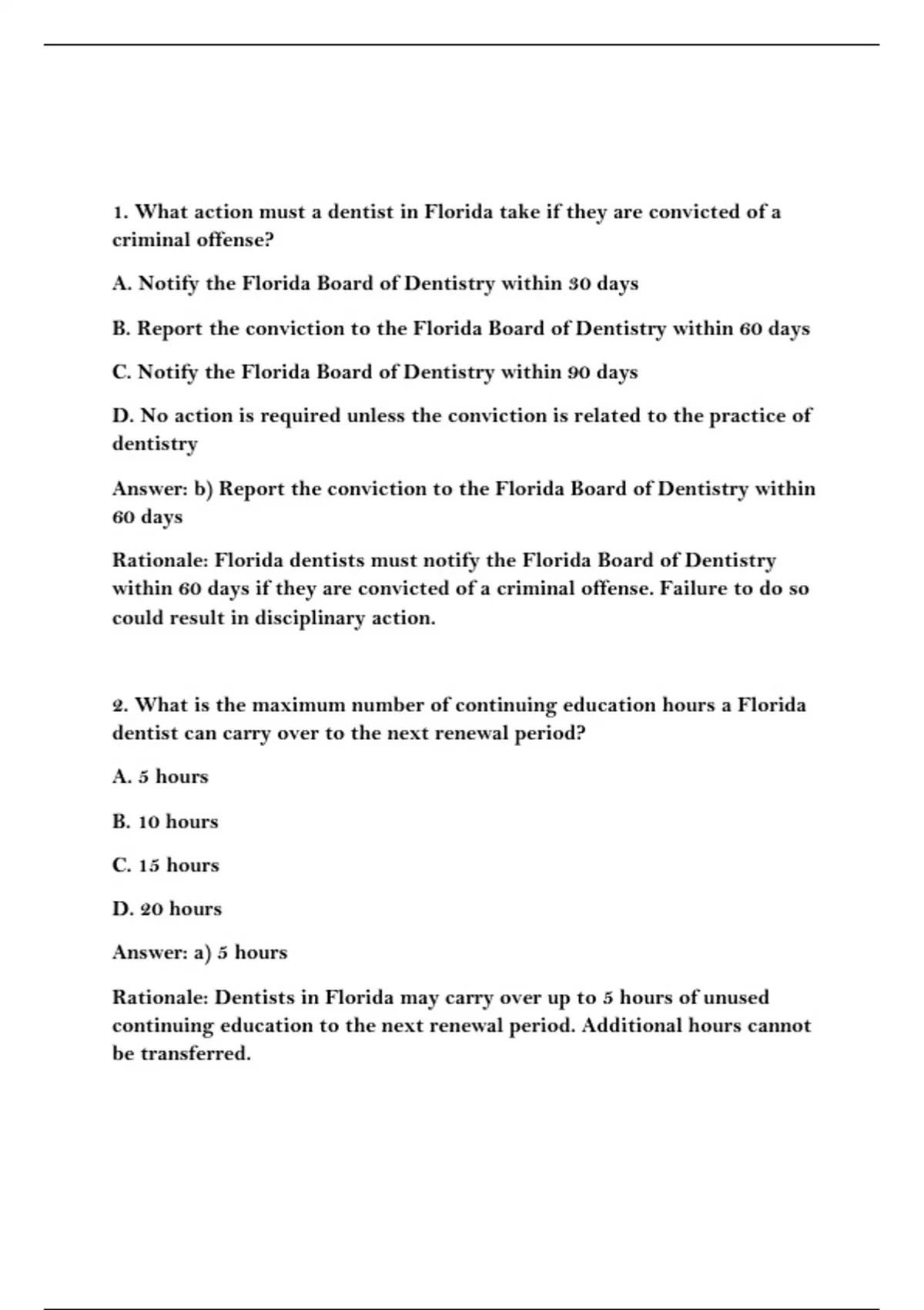 Rationale: Dentists in Florida may carry over up to 5 hours of unused
