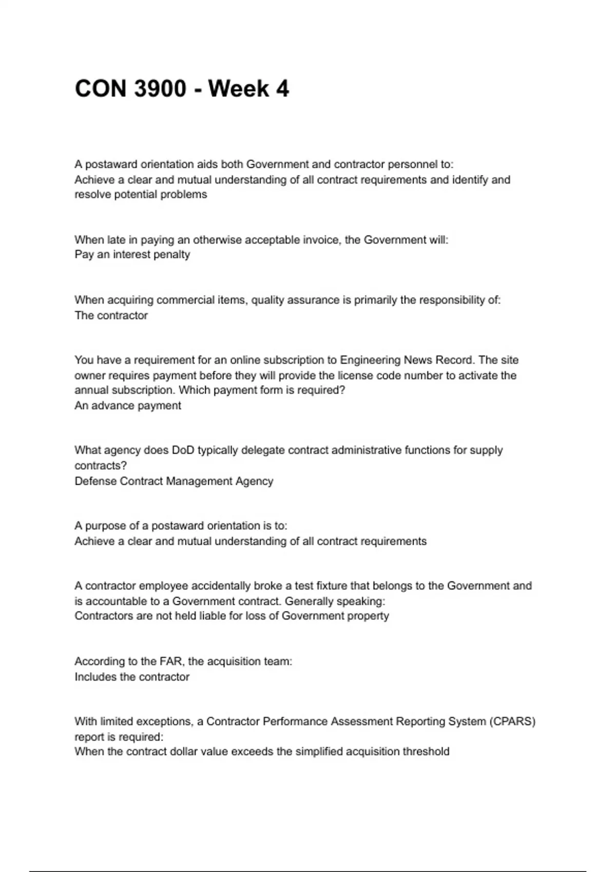 With limited exceptions, a Contractor Performance Assessment Reporting System (CPARS)