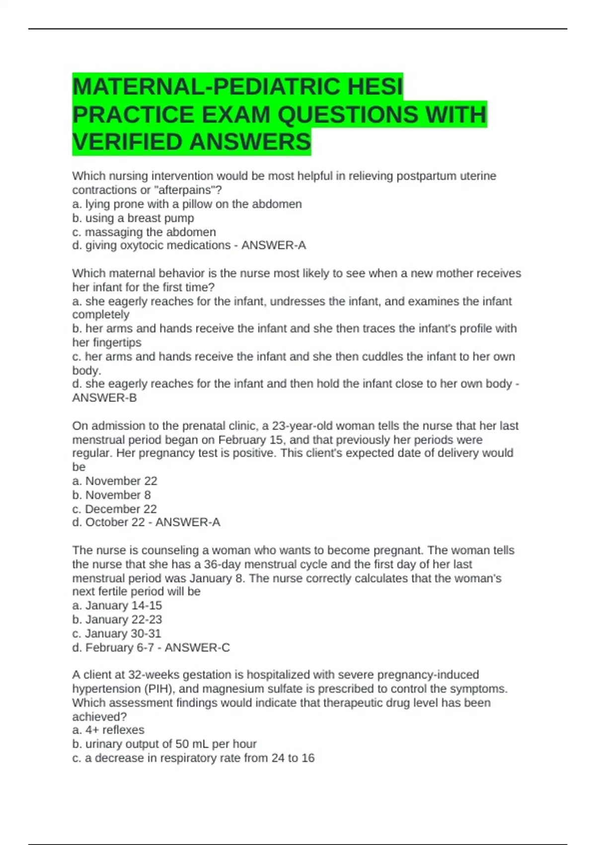 MATERNAL-PEDIATRIC HESI PRACTICE EXAM QUESTIONS WITH VERIFIED ANSWERS