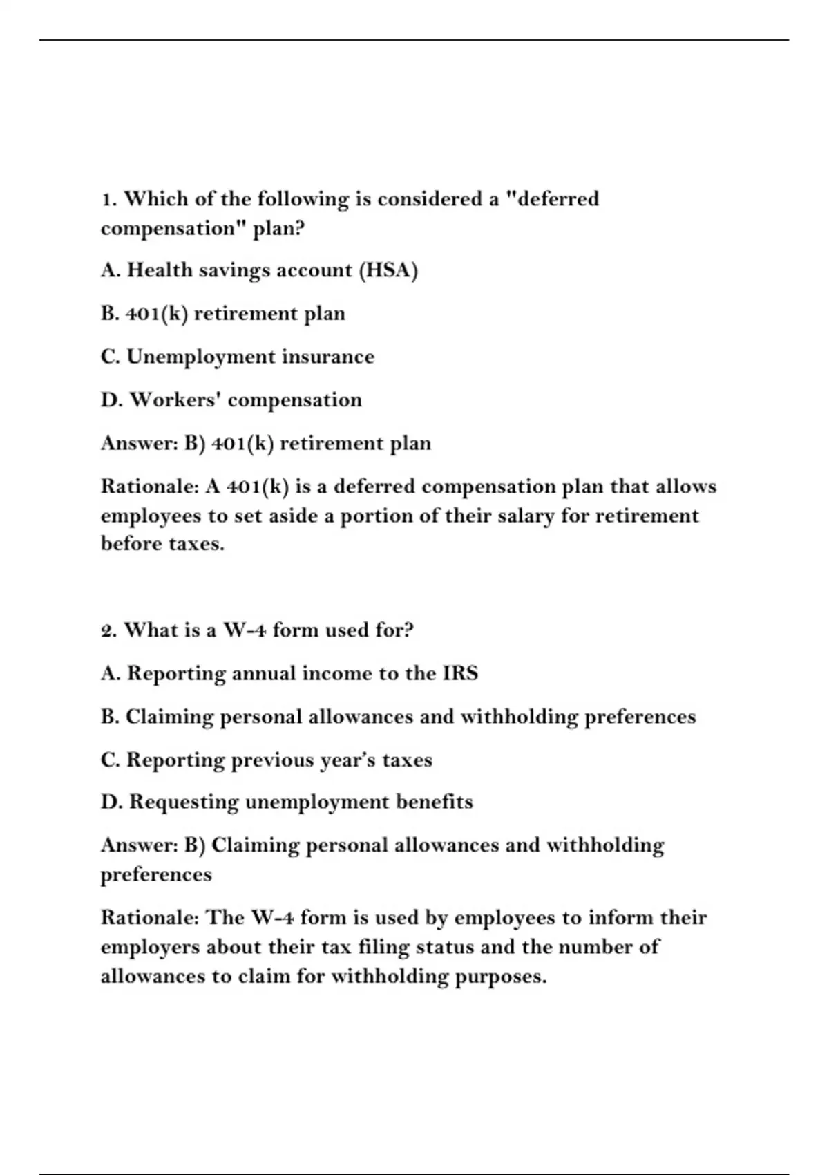 Rationale: A 401(k) is a deferred compensation plan that allows
