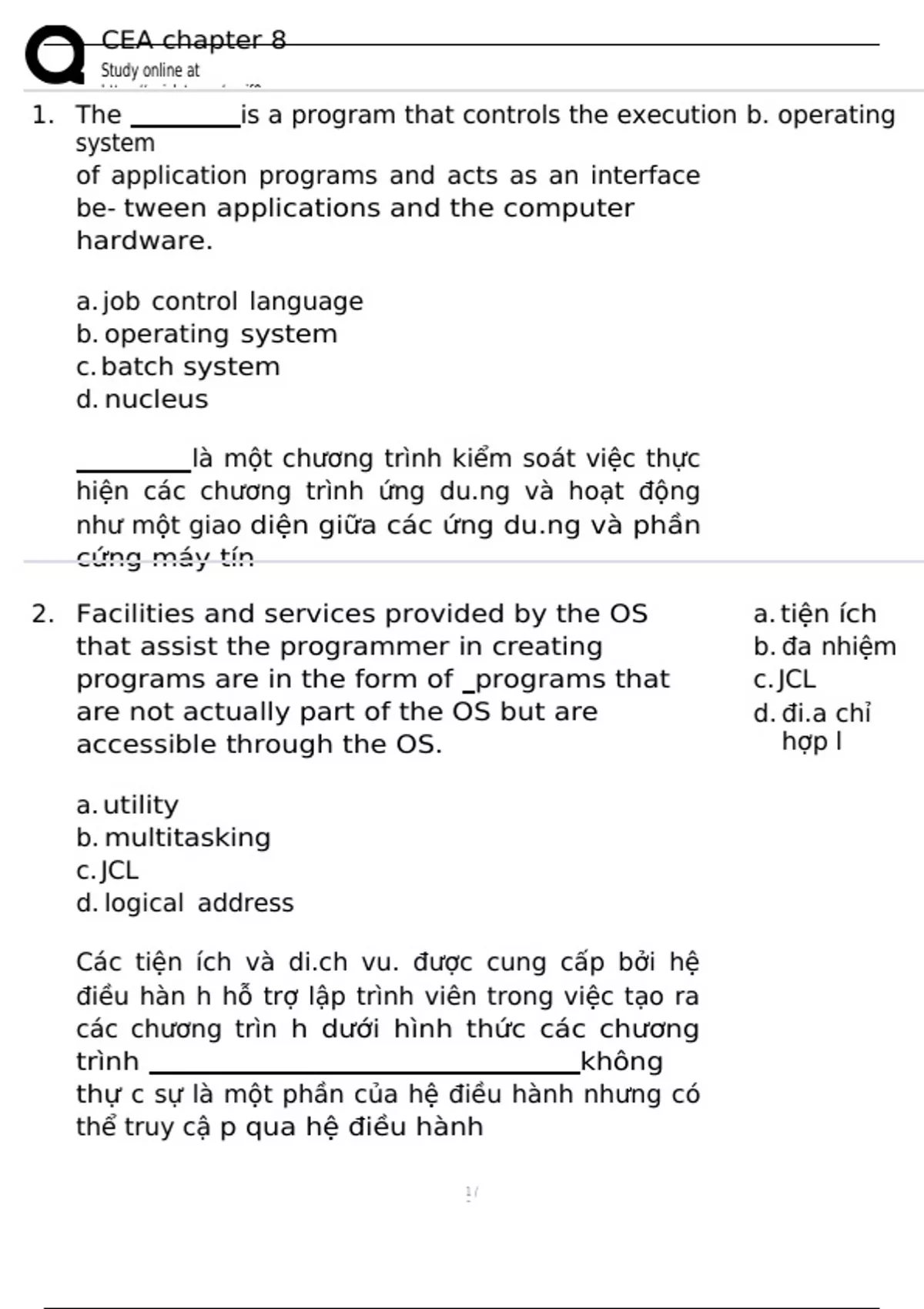 1. The is a program that controls the execution b. operating