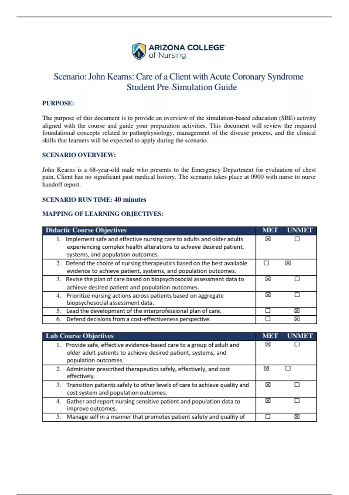 Scenario: John Kearns: Care of a Client with Acute Coronary Syndrome