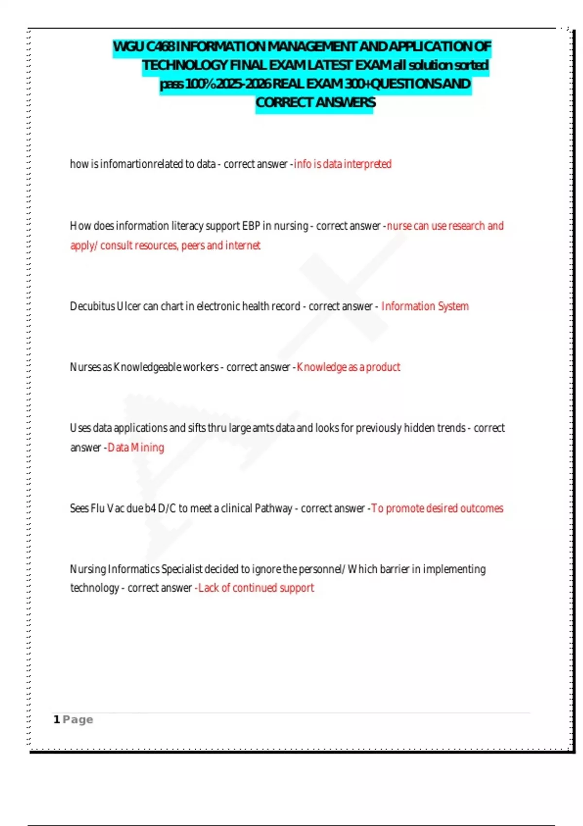 , WGU C468 INFORMATION MANAGEMENT AND APPLICATION OF