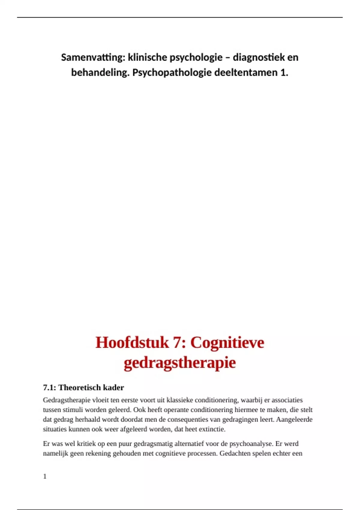behandeling. Psychopathologie deeltentamen 1.